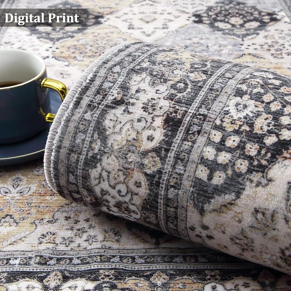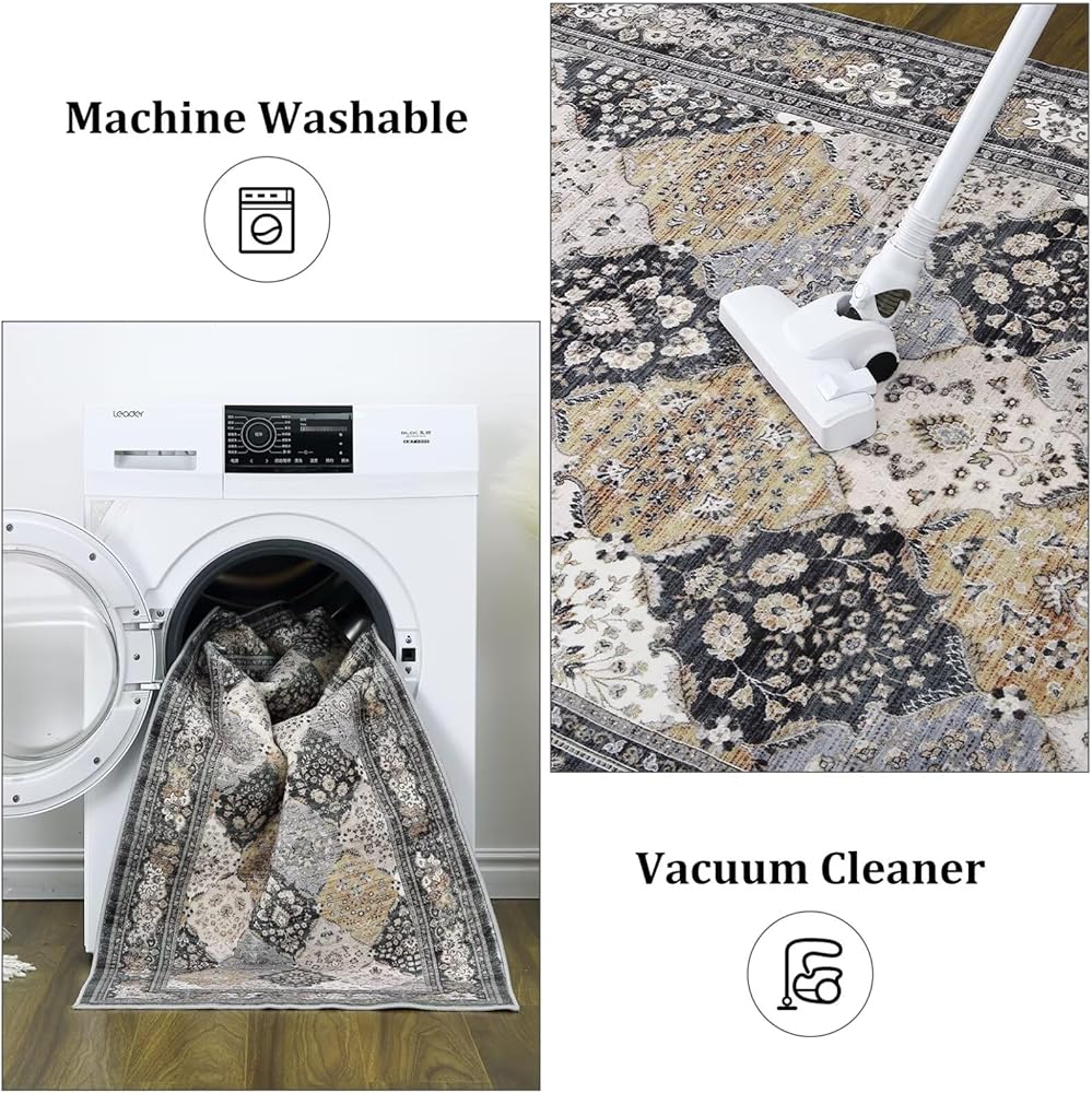 【Vintage-inspired design】 The wahable floral pattern of this rug adds a touch of old-world charm to any room in your home. With its intricate details and rich colors, this rug is sure to make a statement. Vintage rug with accent and classic design,fresh your home easily.
