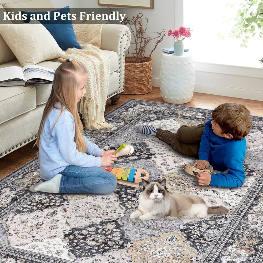 【Premium Material】Our vintage area rugs are made of premium polyester fibers, which are tightly woven together, creating a plush texture that is soft to the touch, allowing air to circulate and keep the rug feeling cool and comfortable. Whether you're looking to add a touch of elegance to your living room or bedroom, this rug is a great choice for any home.