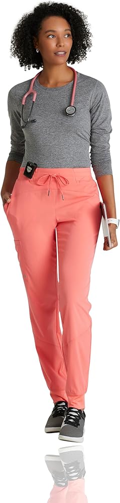 BARCO One Boost Scrub Jogger للنساء - بنطال ركض طبي بنمط اليوغا، متوسط ​​الارتفاع، 4 اتجاهات قابل للتمدد للنساء Sunset Coral XX-Small طويل القامة