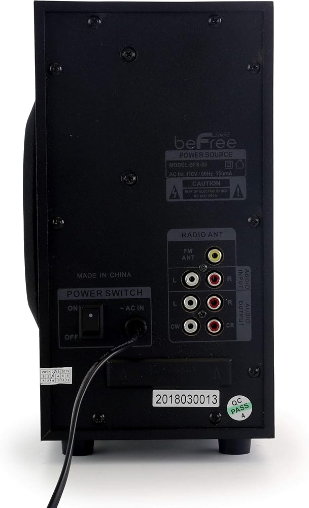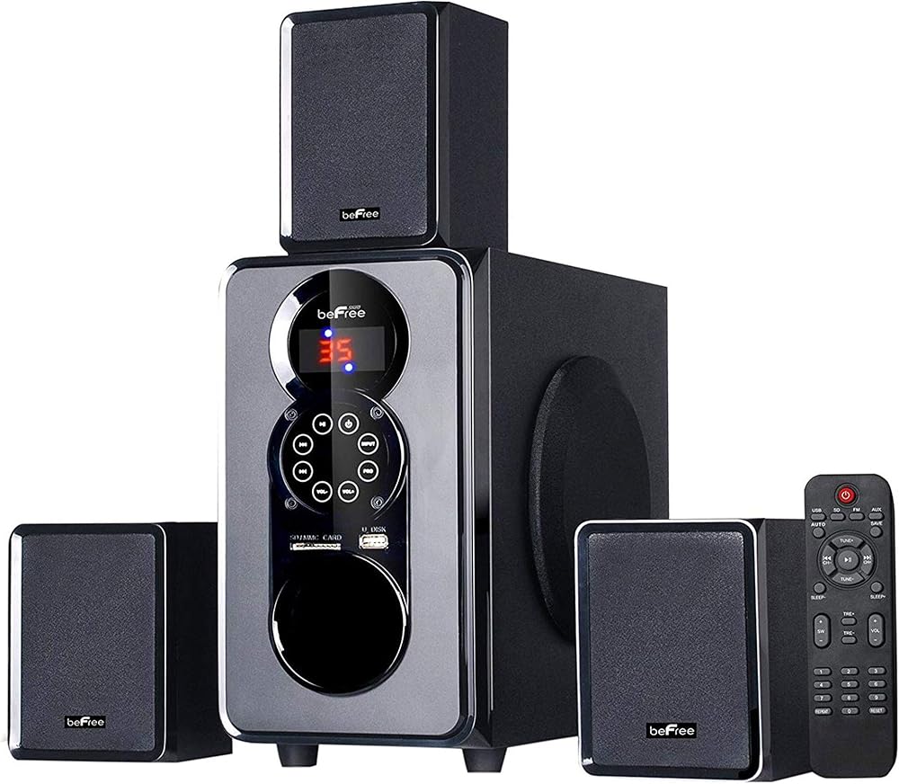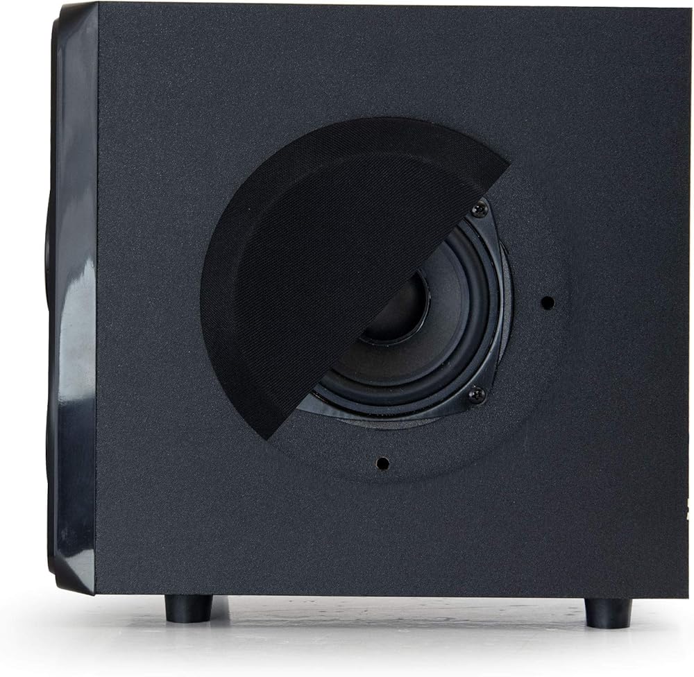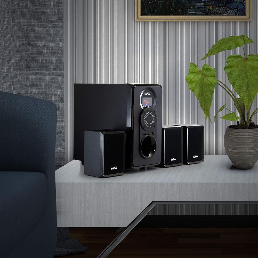 استمتع بتجربة المسرح المنزلي المثالية مع نظام مكبر الصوت المحيطي 3.1 قناة بتقنية البلوتوث من بي فري ساوند. تم تصميم نظام مكبر الصوت هذا بأناقة ويتميز بمظهر أنيق وصوت سلس. مع إمكانية البلوتوث ويو اس بي واس دي وراديو اف ام، يوفر النظام أفضل خيارات الاستماع الممكنة لمتعتك. تتضمن مكبر صوت واحد مقاس 4 انش، وثلاثة مكبرات صوت مقاس 2.5 انش، وجهاز تحكم عن بعد (يتطلب بطاريتين ايه ايه ايه، غير متضمنتين)، كيبل صوت، هوائي اف ام