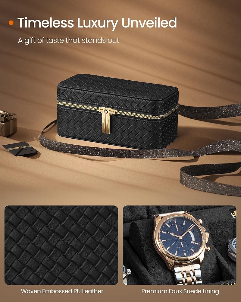 【جاهزة للسفر】صغيرة الحجم وخفيفة الوزن، يمكنك تعبئتها بسهولة في حقيبة الظهر أو الأمتعة. استمتع براحة وجود ساعاتك المفضلة معك، سواء كنت مسافرًا للعمل أو لقضاء عطلة نهاية الأسبوع