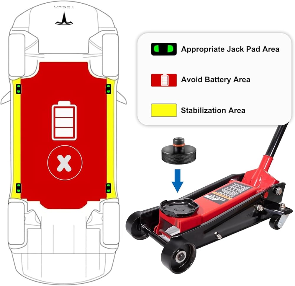 [الطراز 3/Y/S/X يجب اقتناؤه]: وسادات جاك لطراز TSL 3/Y/S/X. أداة إصلاح الإطارات: قد لا تتوفر بعض متاجر الإصلاح. بدون محول جاك، فإنك تخاطر بإتلاف بطارية السيارة عند رفعها لتدوير الإطارات