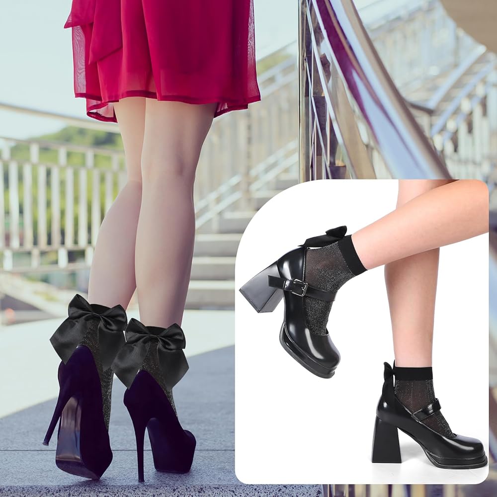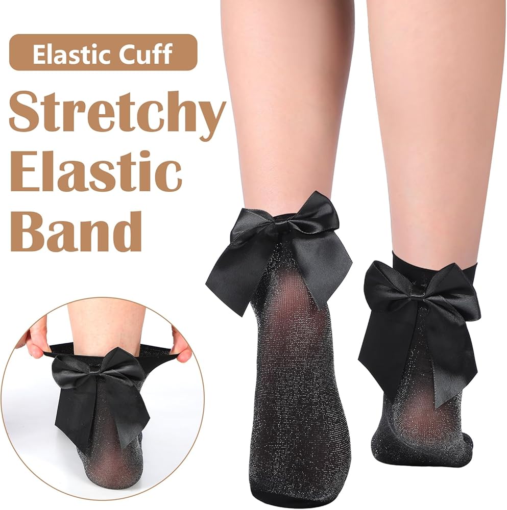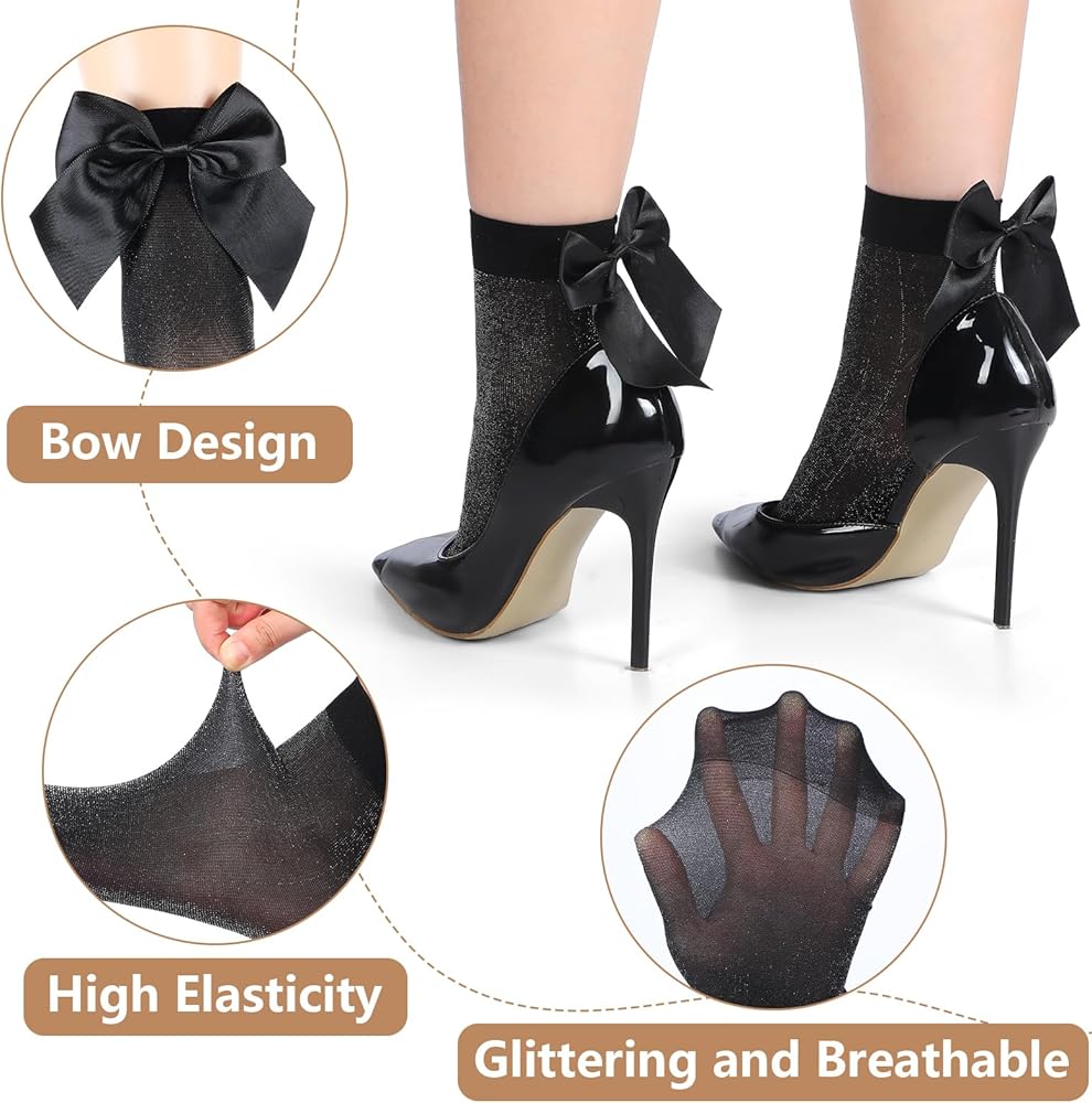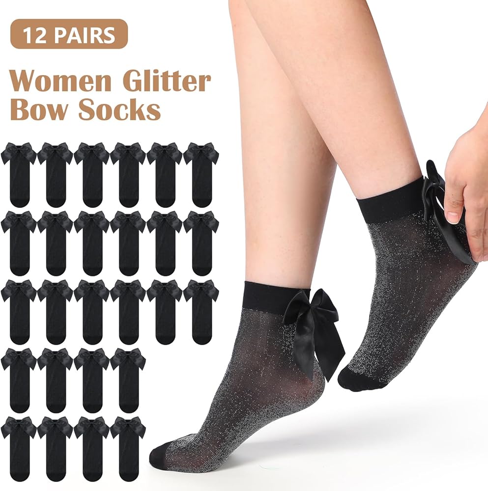 These women Glitter Bow Socks are designed with care and precision. Each sock is expertly crafted with a combination of fashionable glitter and black tones that helps enhance your outfit's classiness. Made from a high-quality material, these socks prioritize comfort, durability, and style.