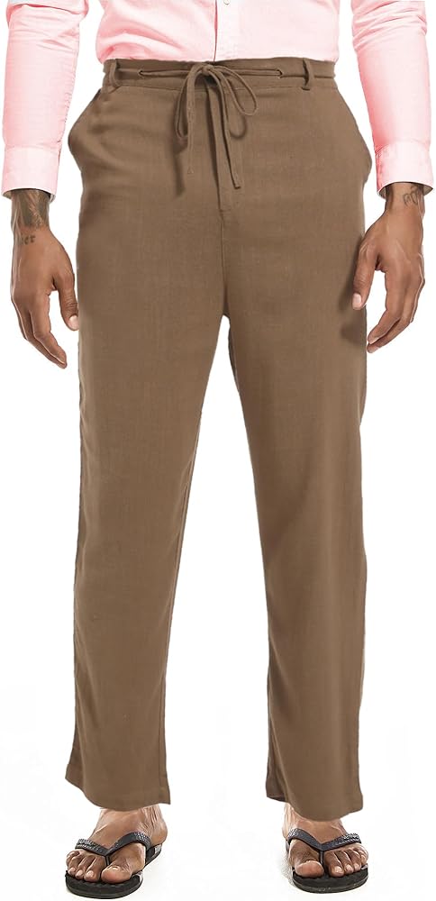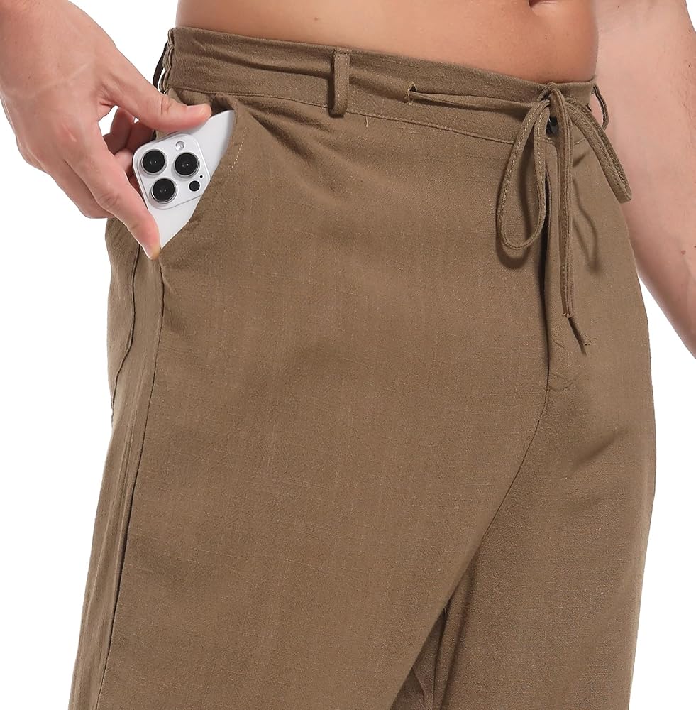 The casual Linen pant has a elastic waistband with adjustable internal drawstring for a custom fit, The linen casual pants are great for all occasions, including daily commute, home wear, summer vacation and beach wedding etc.
