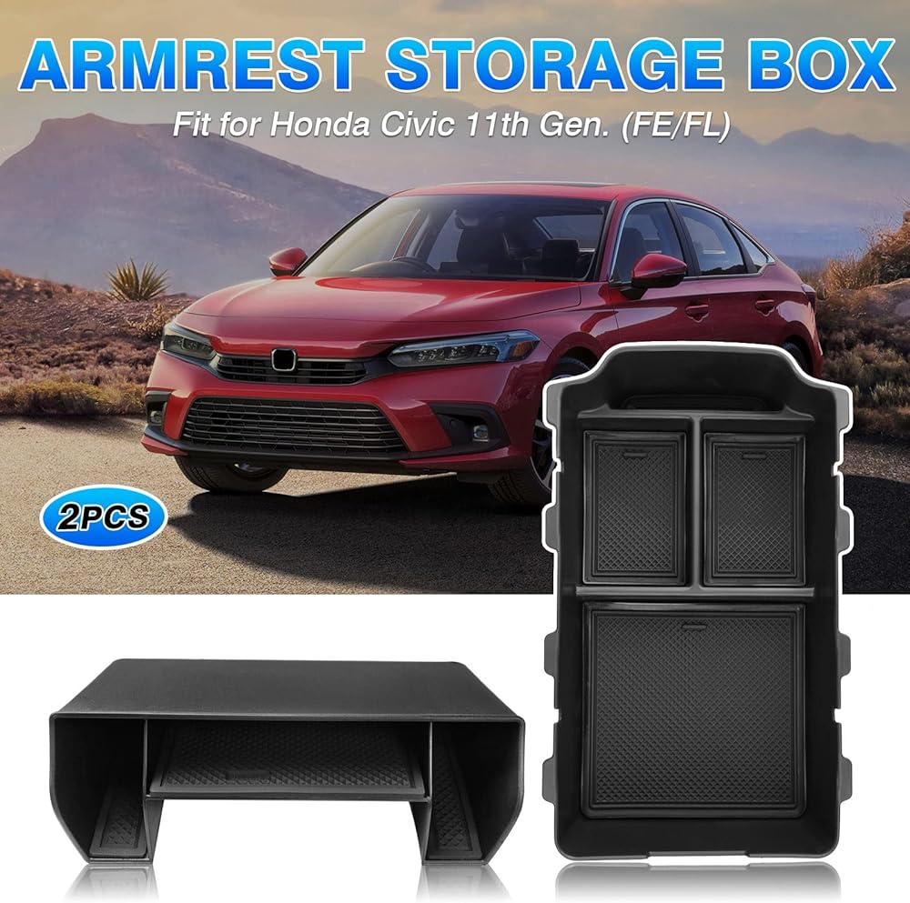 منظم وحدة التحكم المركزية قطعتان من Autoorder لهوندا سيفيك 2022 2023 2024 2025 ملحقات صندوق تخزين مسند الذراع صينية إدخال ثانوية مع سجادات غير قابلة للانزلاق (ليست من أجل Civic Si)