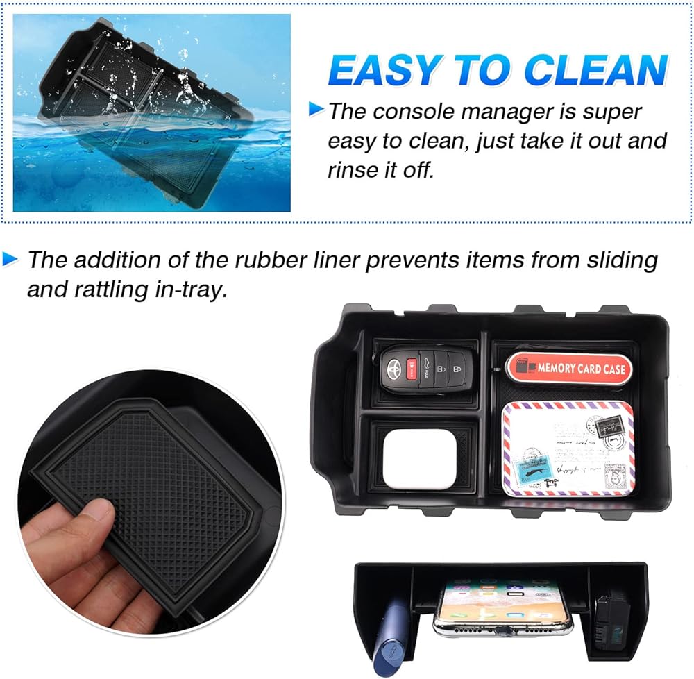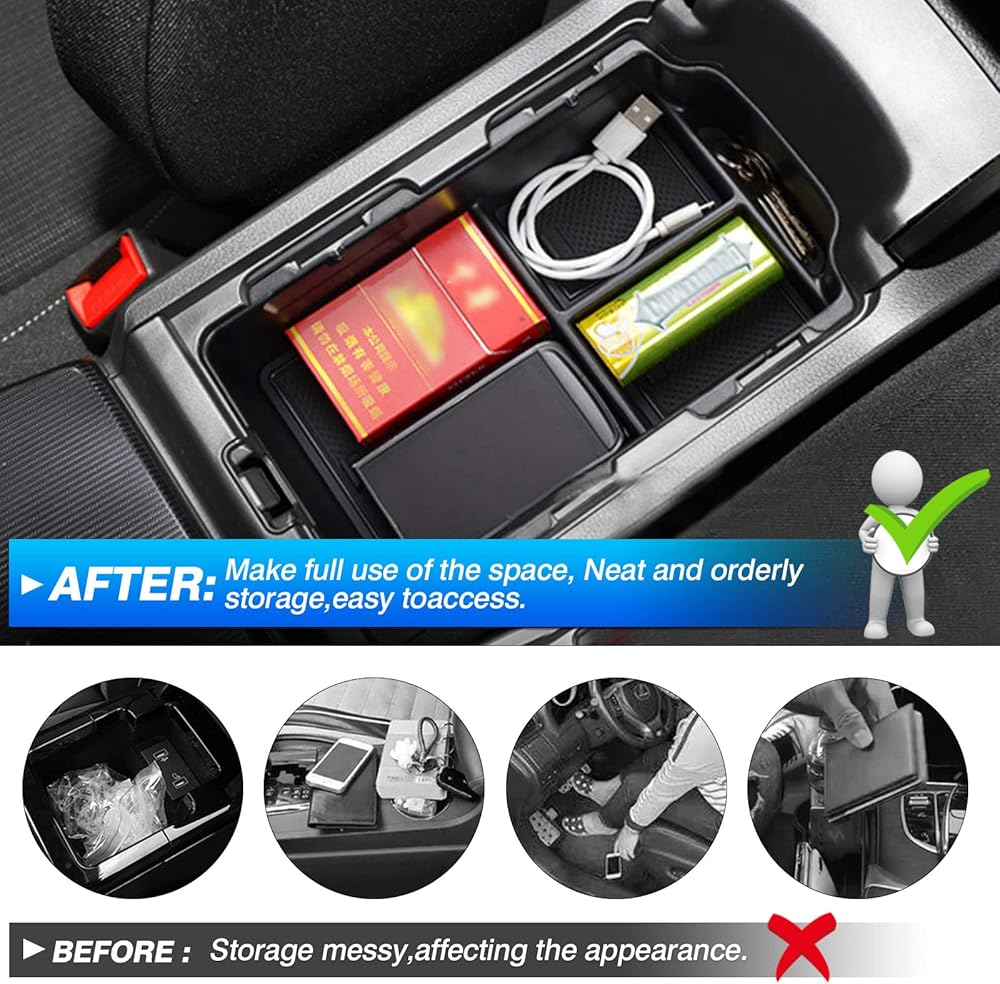 توسيع المساحة --- من المفيد الاستفادة الكاملة من مساحة سيارتك. أضف بعض المساحة لملء وحدة التحكم الداخلية لسيارتك، وجمع أغراضك وتنظيمها في وحدة التحكم. مساحة تخزين إضافية عن صندوق وحدة التحكم الأصلي.