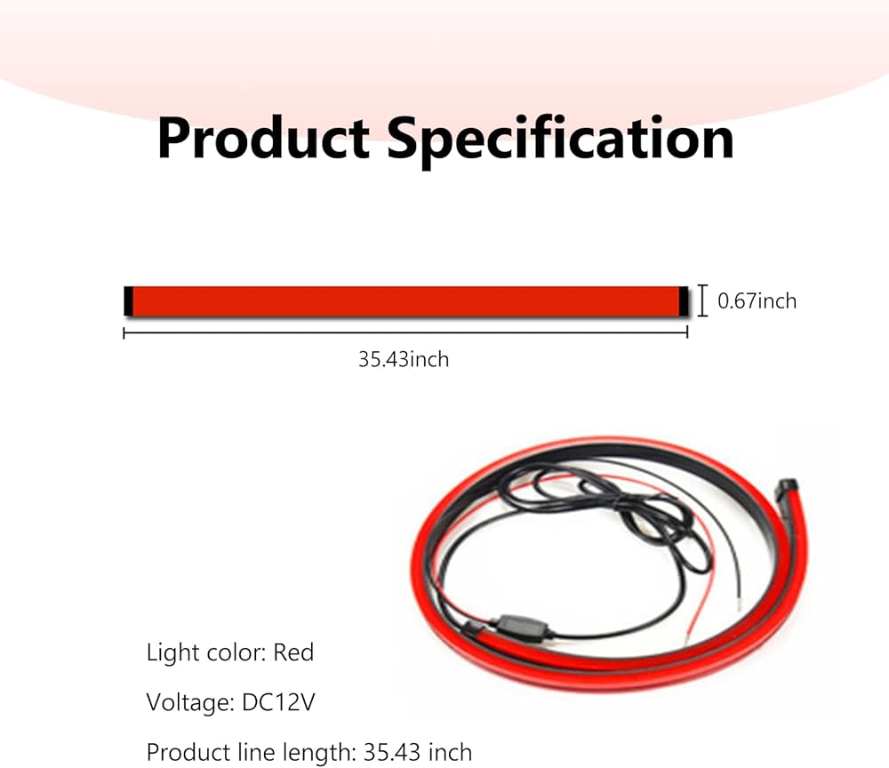 • 🚕 Universal Size: One roll of 35.4In or 39.4In LED light bar. DIY widely used in most cars, trucks, pickups, SUVs, RVs, vans, trailers, etc. Ideal safety accessory to illuminate your car.