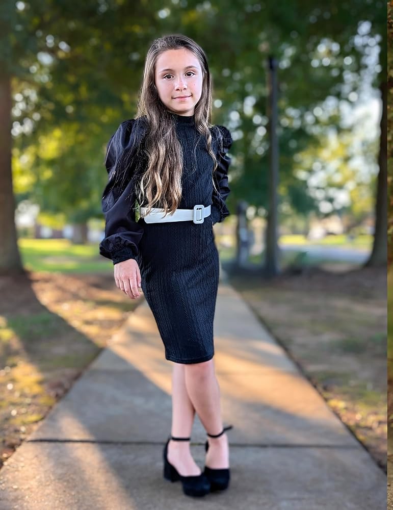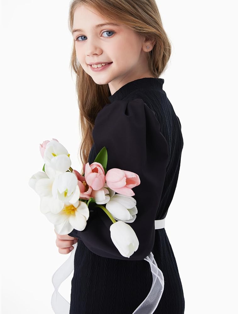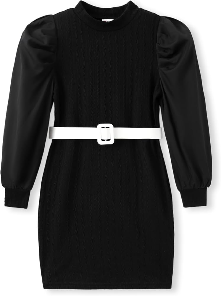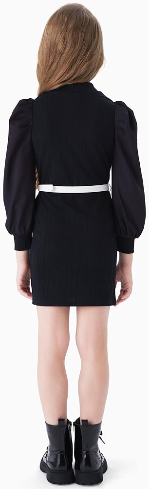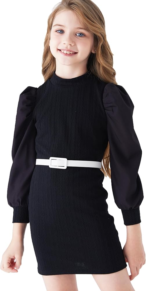 تصميم خاص: كم طويل مرن منتفخ برقبة وهمية، تصميم خاص وجميل. فستان بودي كورن بطول فوق الركبة ولون سادة مع طباعة زهور، رائع وأنيق للارتداء اليومي للفتيات.