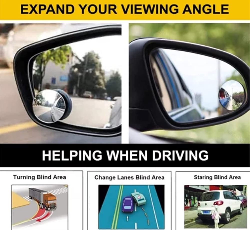 • DRIVE SAFER with Convex angle designed to maximize view of blind spot when passing and changing lanes on any road. Help to avoid potential accident or collision, creating a safe driving environment Perfect for any Car, Van, SUV, And Trucks.