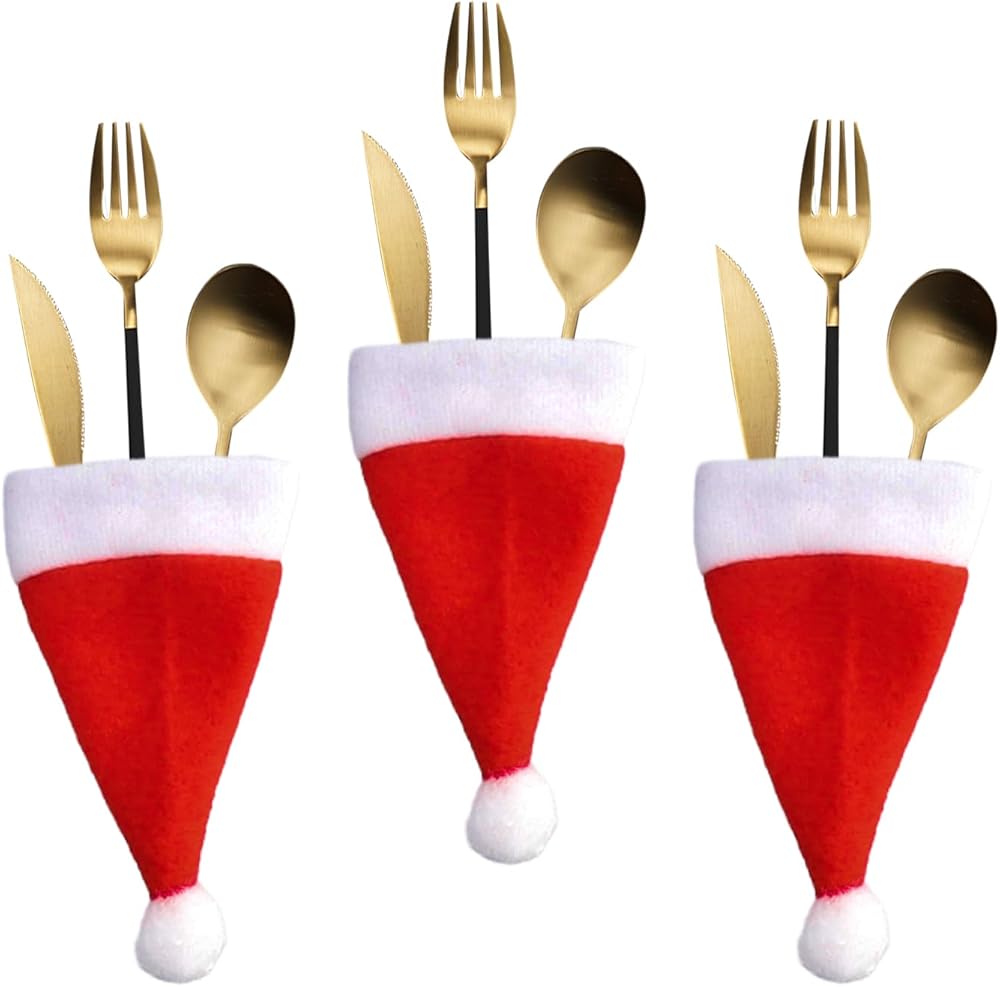 4 x Santa Claus Hat Silverware Holders