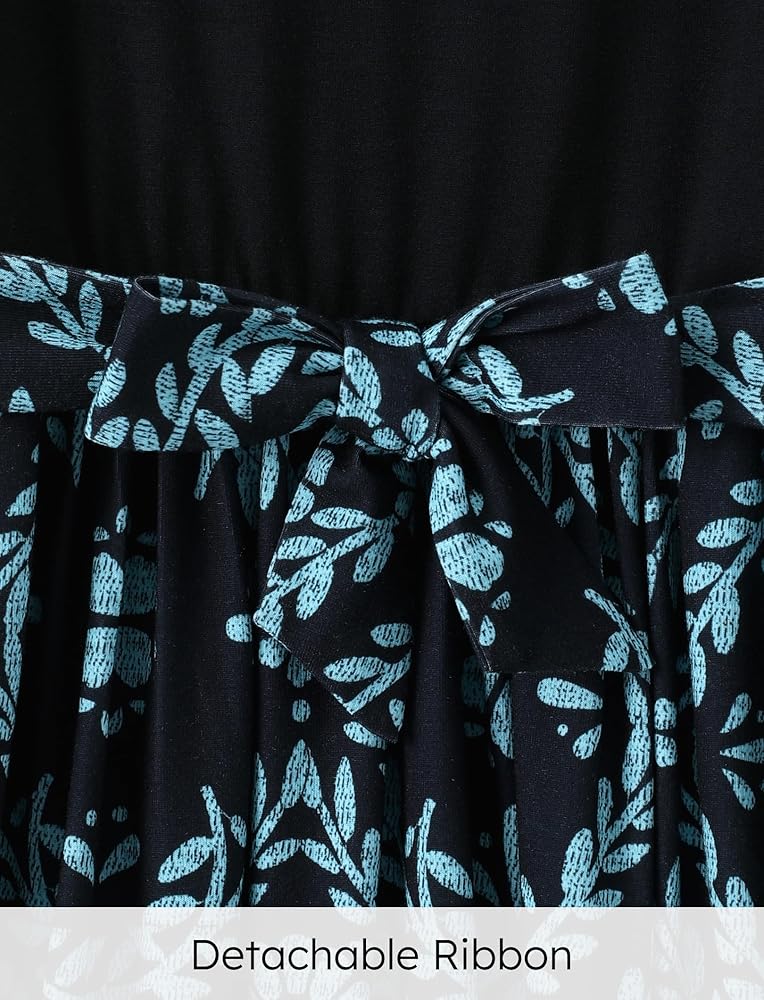 تصميم نابض بالحياة وواسع: طراز كاجوال بسيط فضفاض، فستان مرقع متباين، رقبة دائرية، كم قصير، مطوي ومرن عند الخصر، طول حتى الأرض، غير مبطن. تضيف الصورة الظلية على شكل حرف A ونمط الجاموس المنقوش / الأزهار / البوهو / الفهد الأناقة، مما يجعل فتاتك تبدو عصرية وجذابة.
