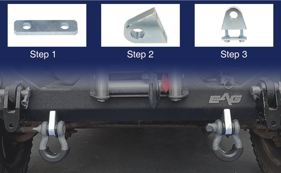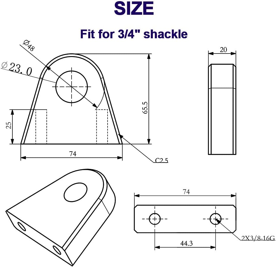 Mountainpeak Clevis يتصاعد اللحام/الترباس على القيد 3/4 بوصة تكبل على شكل حرف D مع لوحة داعمة لمصد الشاحنة، دلو الجرار، مركبات الطرق الوعرة