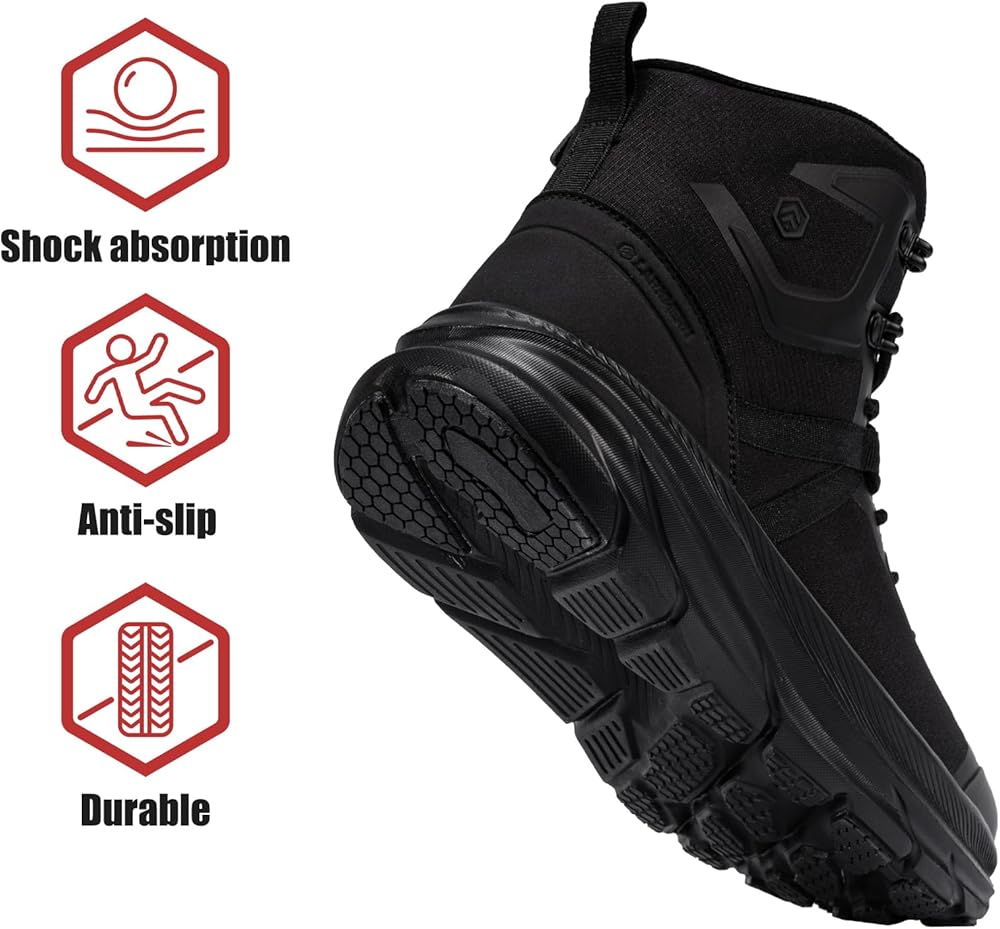Stability And Comfortable: For hiking enthusiasts, this men's lightweight tactical work boot is a perfect choice. With their durable sole and comfortable fit, they provide excellent support and stability during long natural walks