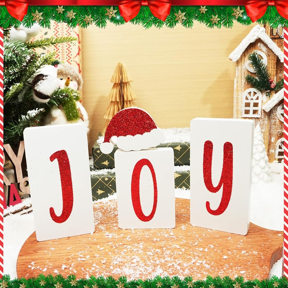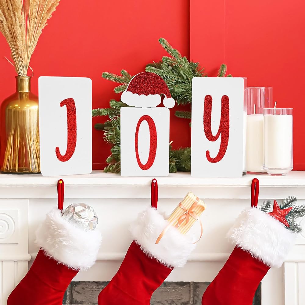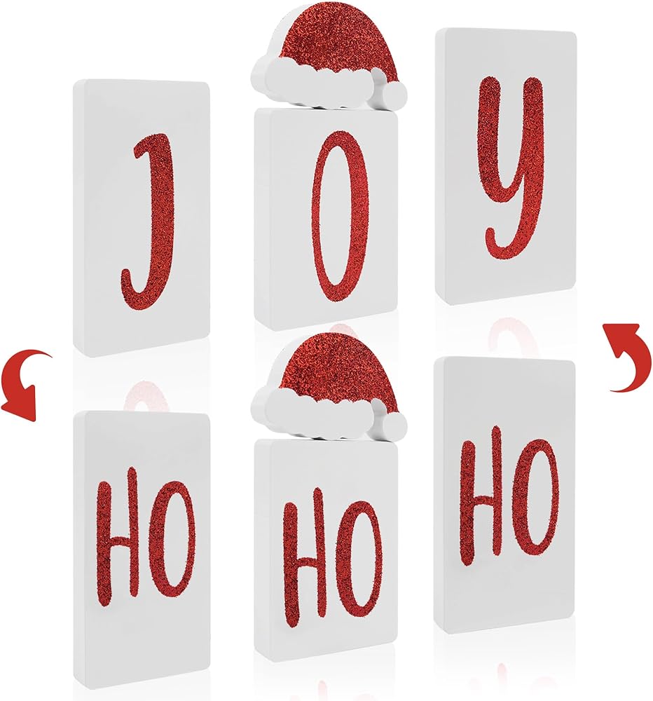 Bright Color Christmas Blocks - Our adorable wooden JOY/HOHOHO signs are painted in most Christmas colors, such as Christmas red and white. The letters are printed with shiny powder. Ideal for styling a holiday party.