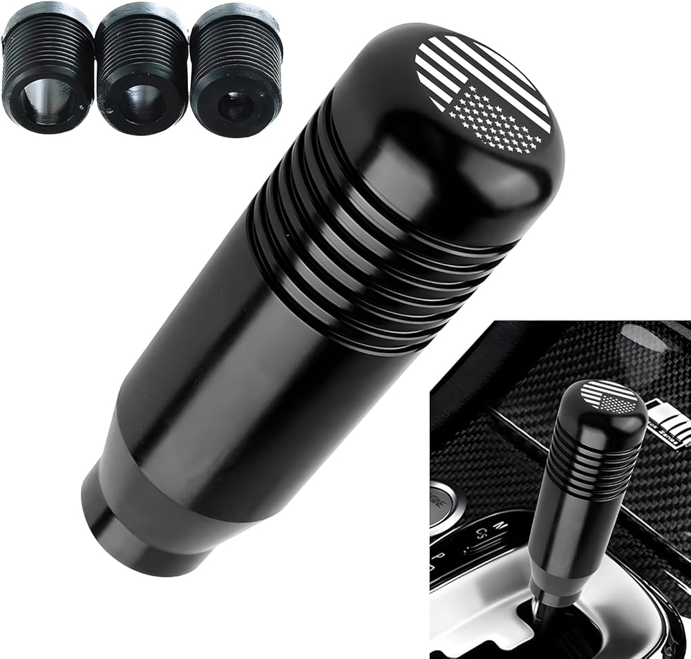 Jewkot 1 PC American Flag Car Shift Knobs, Comfortable Touch, Durable Metal Vehicle Shifter Decoration with Adapters, Universal Weighted Automotive Shifter Lever Accessories (Black)