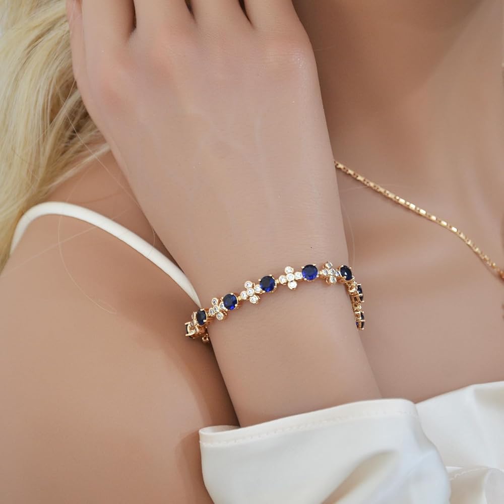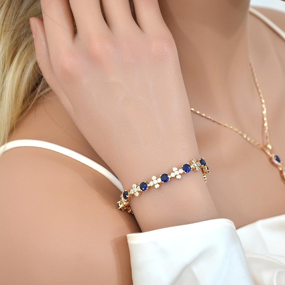 جودة فاخرة: جميع أسورة Sapphire Glacier الأنيقة الخاصة بنا مطلية مرتين. لقد قمنا بطلاءها في البداية بالذهب عيار 18 قيراط. وبعد ذلك، تم منحها لمسة نهائية وقائية طويلة الأمد مباشرة بعد عملية الطلاء. خالية من النيكل والرصاص ولا تسبب الحساسية.