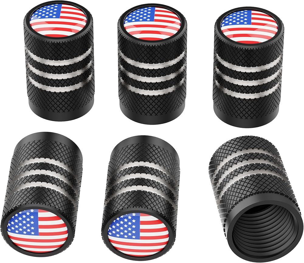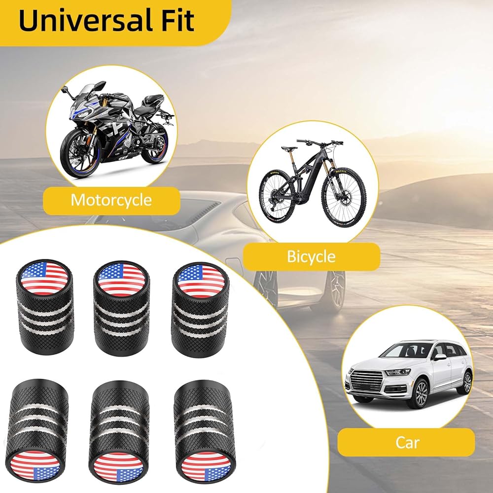 أغطية جذعية صمام الإطارات - 6 قطع علم ملون، ألومنيوم مؤكسد مع حلقة مطاطية بالداخل مقاومة للتآكل ومقاومة للتسرب، أغطية جذعية عالمية مقاومة للغبار للسيارات والشاحنات والدراجات والدراجات النارية والدراجات.