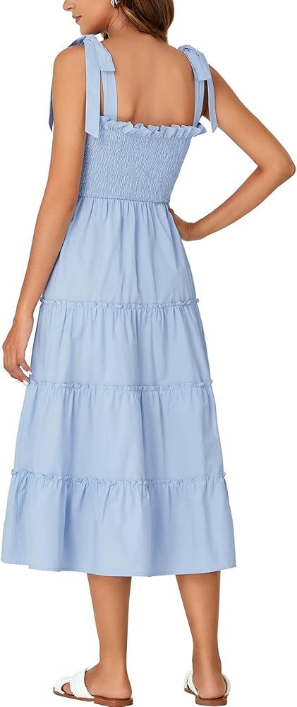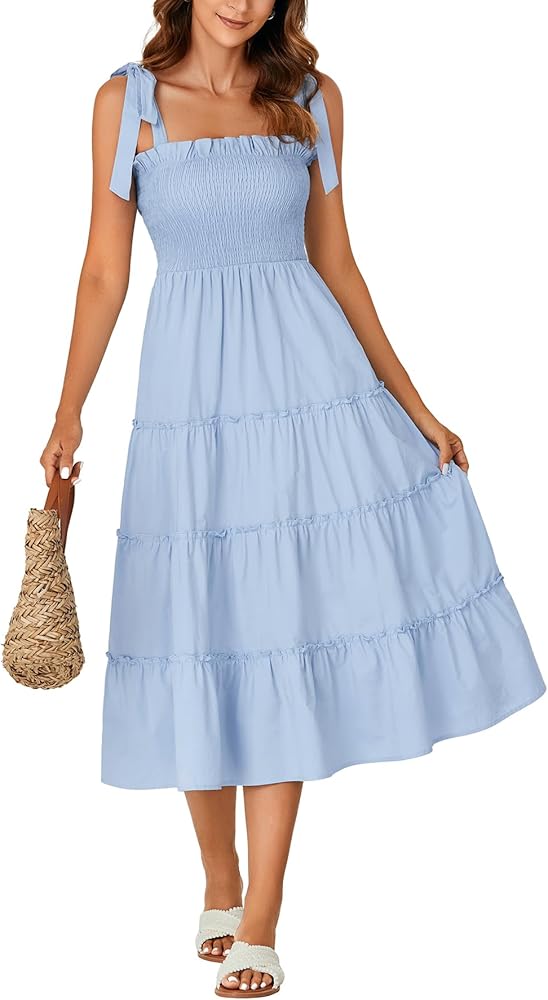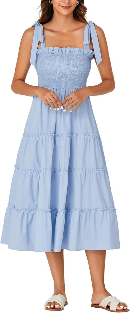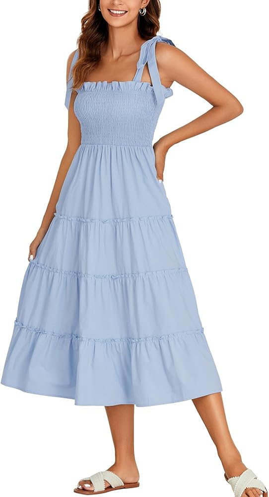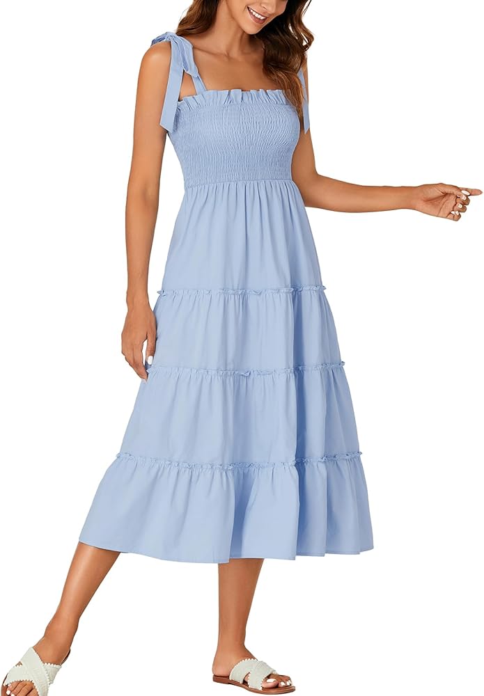 المزايا: تنورة متوسطة الطول برقبة مربعة مع أشرطة سباجيتي، وكتف مربوط، ومكشكشة عند الصدر والخصر، تظهر محيط خصرك ولكن ليست ضيقة جدًا، وحاشية مكشكشة، توفر جاذبية وأنيقة، تبدو مثل فستان الشمس الريفي العتيق. مريح كفستان أمومة بفضل الصورة الظلية ذات الخطوط.