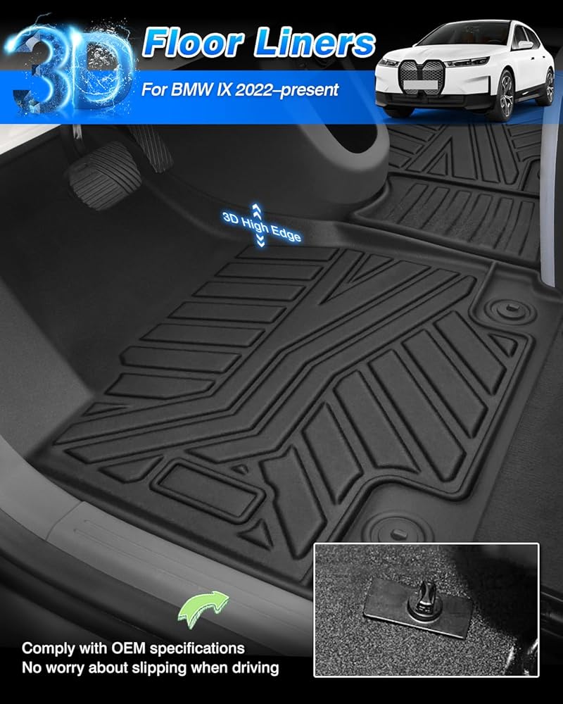 • ملحقات iX-- بطانات الأرضية لدينا مصنوعة خصيصًا لسيارة BMW iX 2022 2023 2024 2025، بناءً على معلومات السيارة الصحيحة، لا حاجة للتشذيب. يعتمد تقنية الفحص ثلاثي الأبعاد لالتقاط كل زاوية وشق لتوفير ملاءمة وتغطية مثالية.