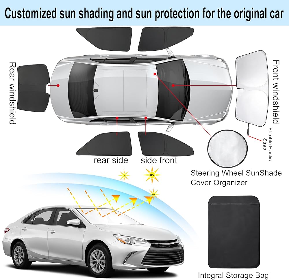 6 قطع YYCKE ظلال نافذة لكامري 2012-2017 لملحقات تويوتا جانبية كاملة للزجاج الأمامي وظل الشمس والأشعة فوق البنفسجية وحماية الخصوصية للتخييم والقيلولة والاسترخاء