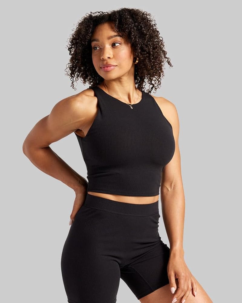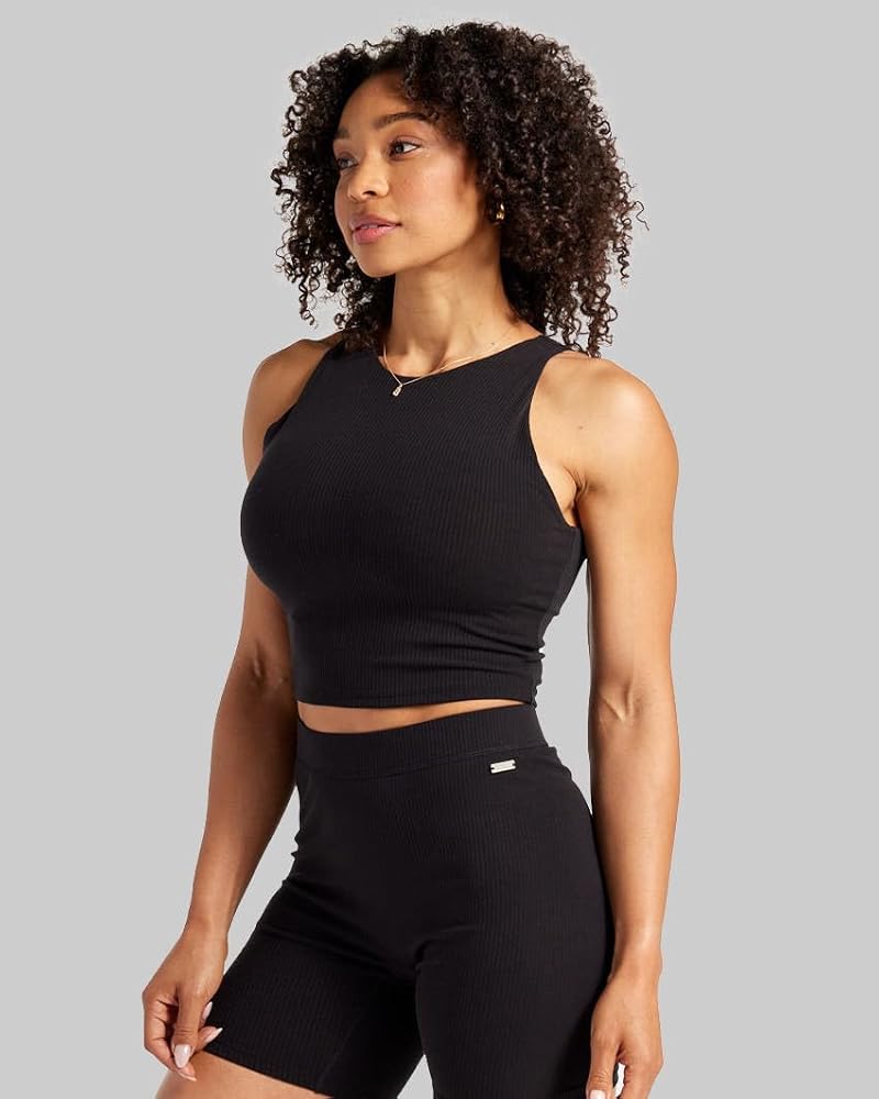 ارتقي بمظهرك اليومي: تتميز حمالة الصدر الطويلة ذات الرقبة العالية من Rib بخط رقبة مربع منخفض، مصنوعة من مزيج قماش ناعم وفاخر. يشتمل على حمالة صدر مدمجة وشريط مطاطي عريض لملاءمة محيطية، مع أكواب قابلة للإزالة لمزيد من الدعم. توفر اللمسات المعدنية المميزة للعلامة التجارية لمسة نهائية راقية، مما يجعلها مثالية للانتقال من الملابس النشطة إلى المناسبات الاجتماعية.