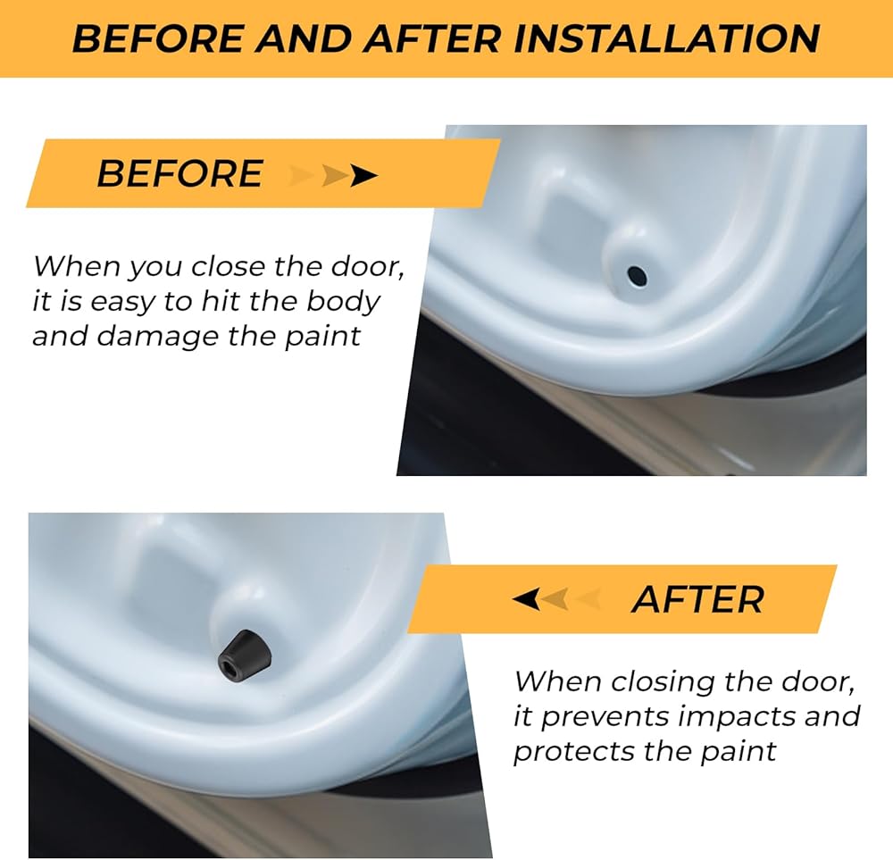 Easy Installation & Adjustment: Our car door bumpers are designed for easy installation. Simply align and press the door slam stopper into place without the need for complex tools or modifications. A quick door test ensures a secure fit every time.