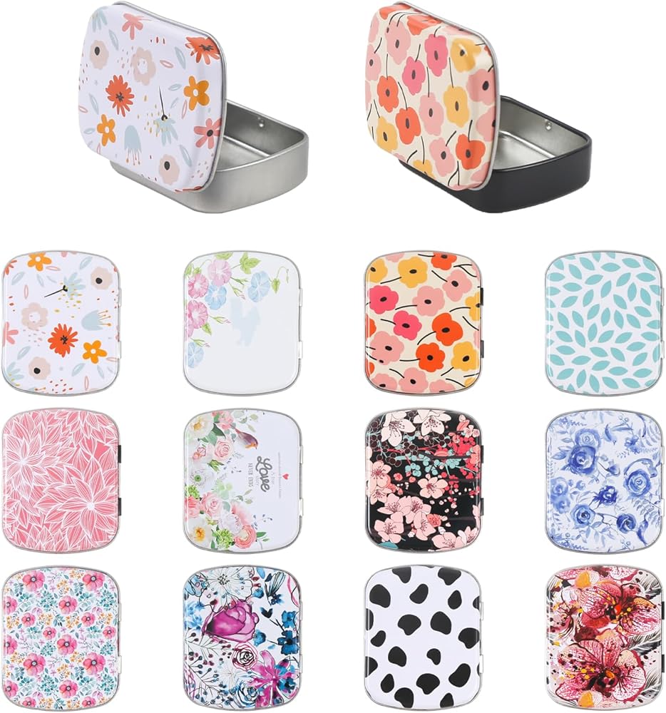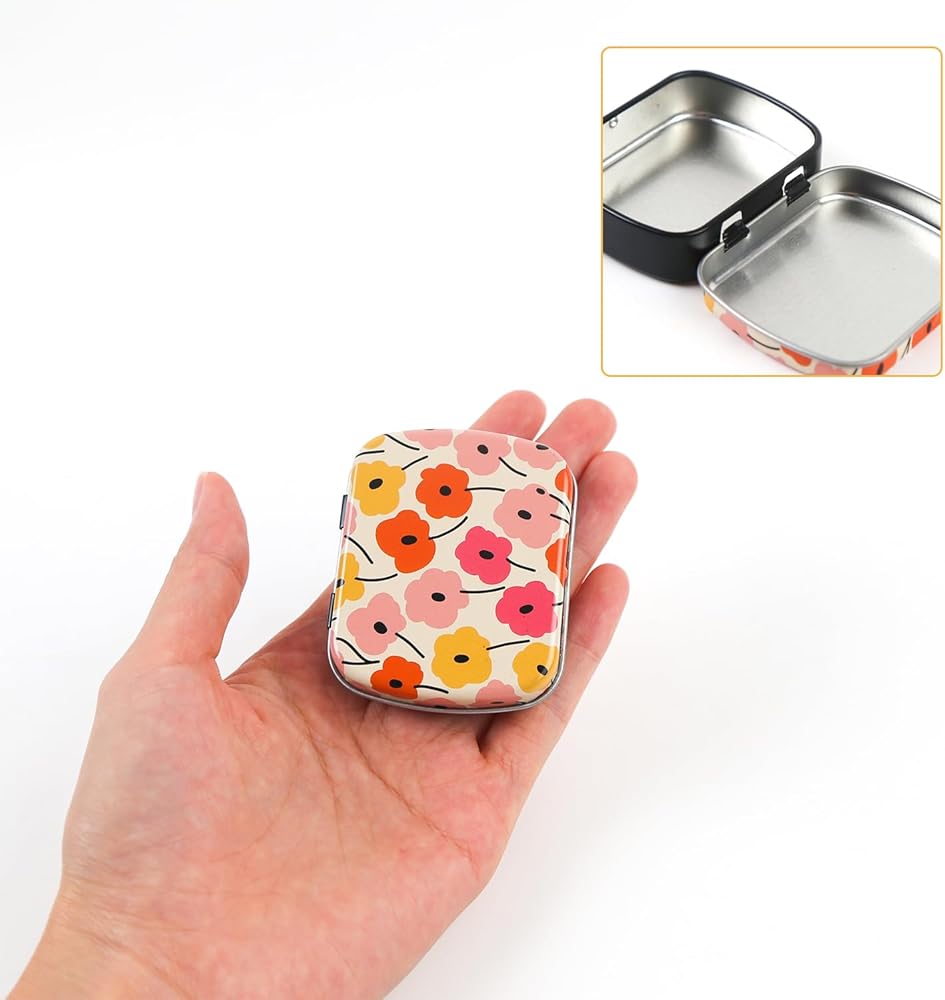 Size: Rectangular metal tins with lids measuring 2.36x1.81 inches