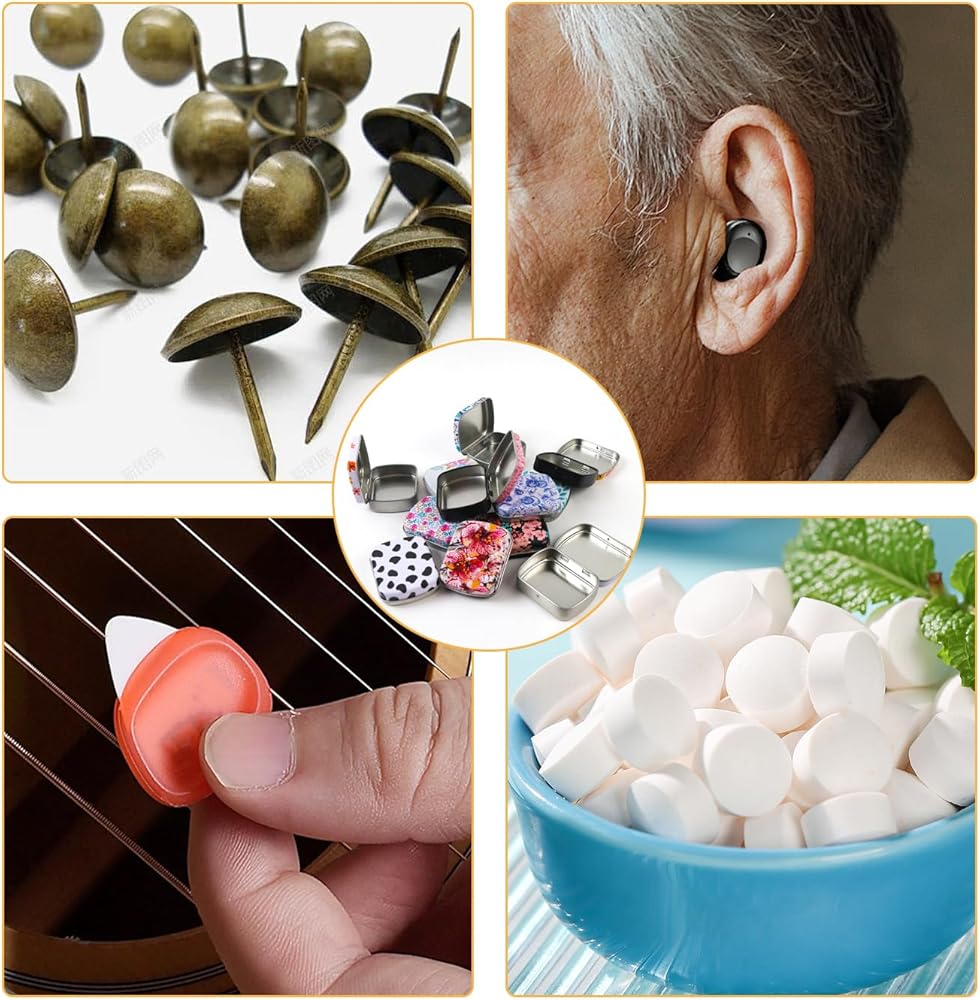 Wide Application: These candy tins with lids can be applied to storing various tiny things, such as candies, pills, earring, jewelry craft, paper clip, nail art, etc