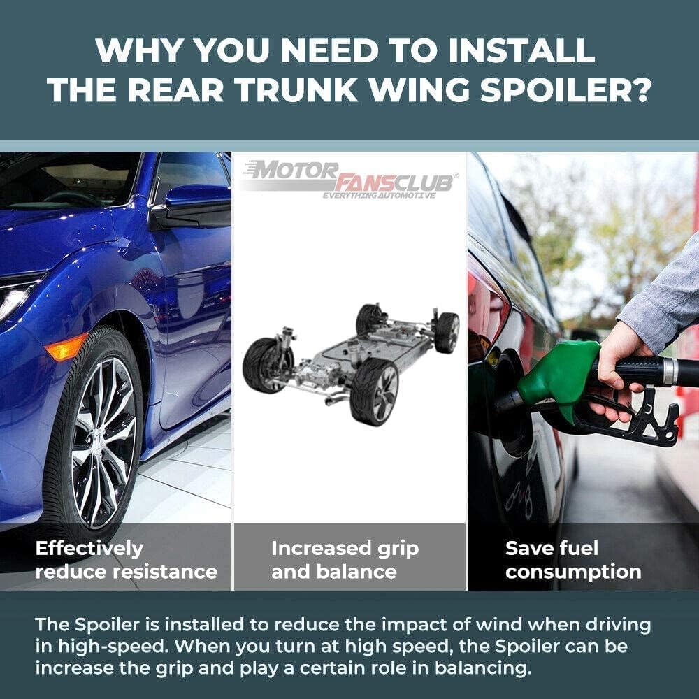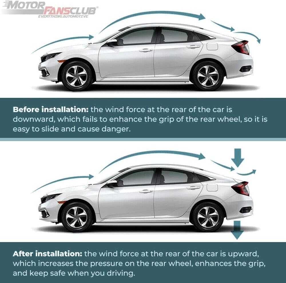 • 【وظيفة عالية الأداء】 يحافظ المفسد على ثبات السيارة أثناء القيادة عالية السرعة، ويقلل من مقاومة الرياح.