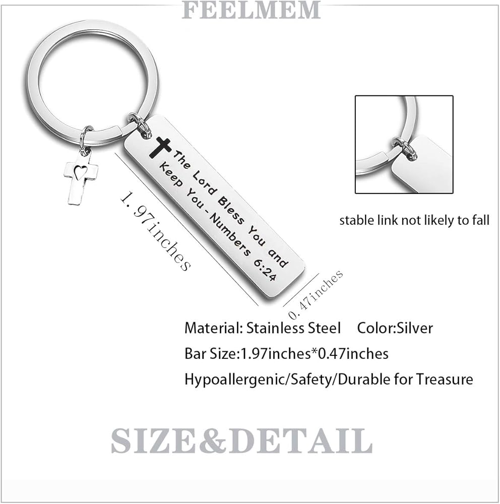 ❤المواد والحجم❤ لن يفقد الفولاذ المقاوم للصدأ بريقه أو يتغير لونه. كما أنه خيار رائع لمن يعانون من حساسية الجلد؛ يباركك الرب ويبقيك أرقام 6:24 قلادة: طول 2 بوصة (50 مم)؛ عرض 0.2 بوصة (6 مم).