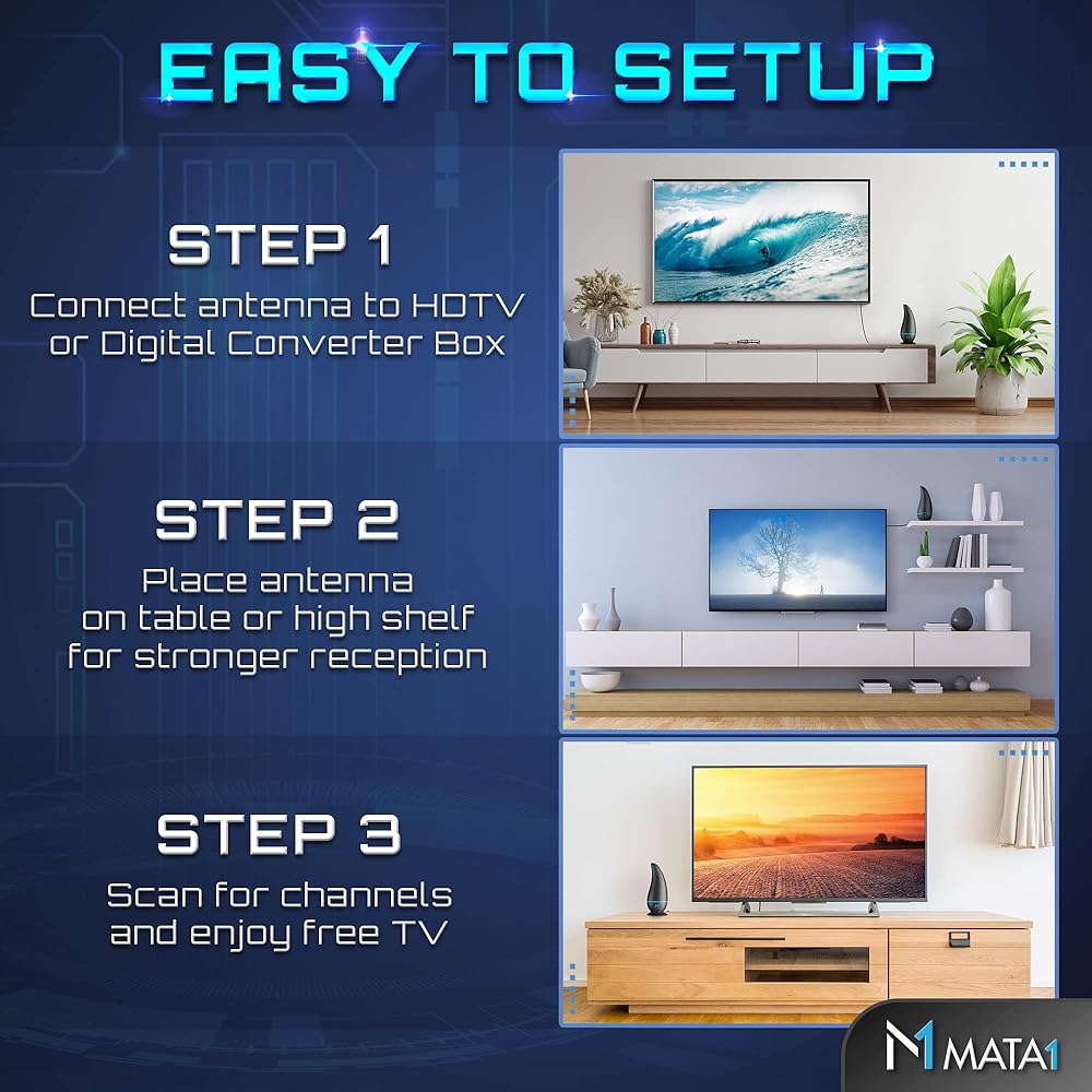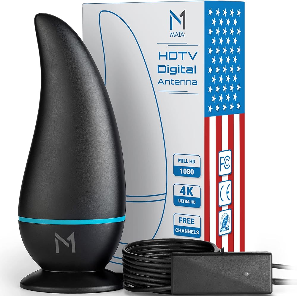 هوائي تلفزيون عالي الدقة 4K للاستخدام الداخلي فقط، مدى طويل 300 ميل، أحدث شريحة 2022، قاعدة مغناطيسية + كابل محوري بطول 14.7 متر من ماتا1 (شركة أمريكية)