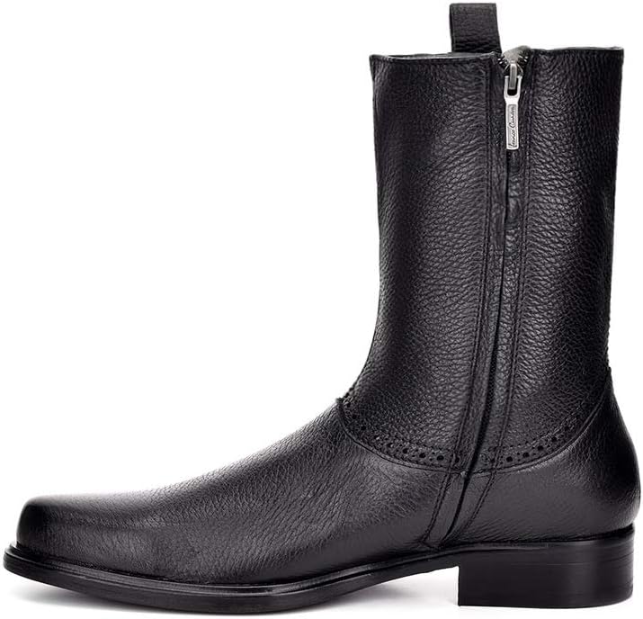 - حذاء بسيط مع تطبيق معدني رقيق للأحرف الأولى من اسم "Franco Cuadra"، وتفاصيل مطرزة وسحاب داخلي