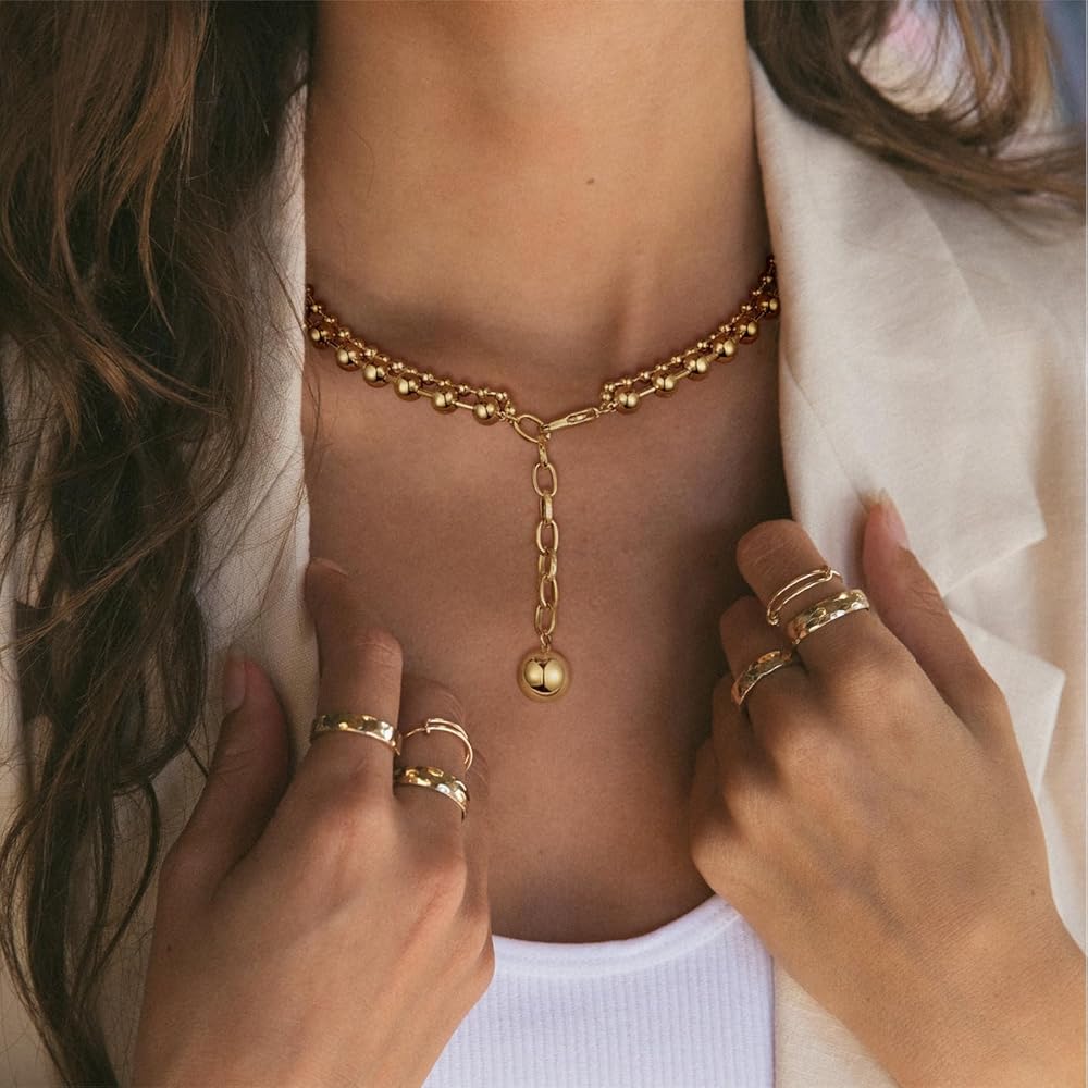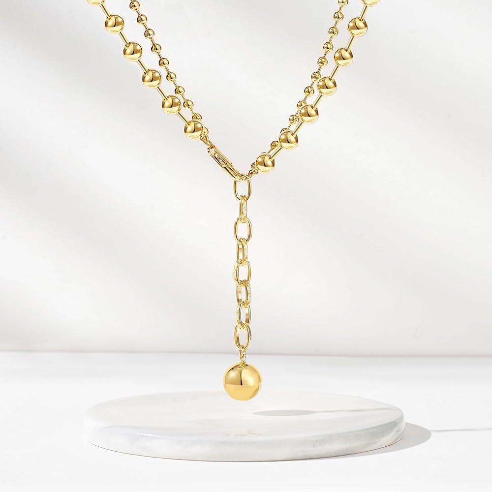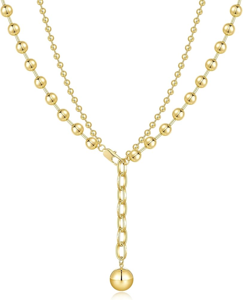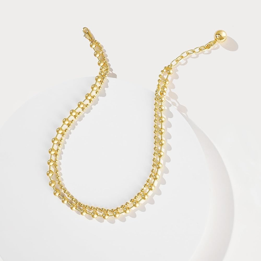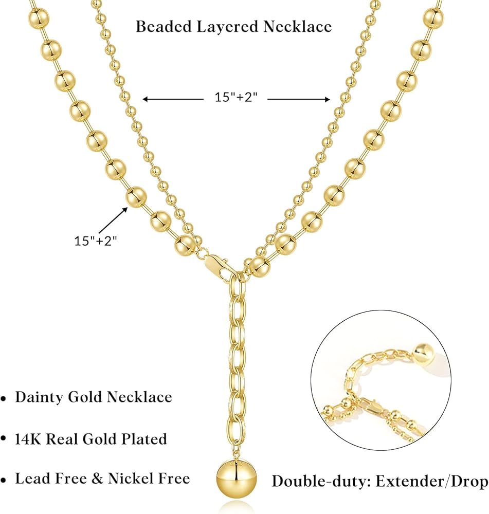 تصميم فريد: تجمع القلادة المطرزة بالذهب بين سلاسل الخرز الأكبر والأصغر. ارتداء هذه القلادة يخلق تأثيرًا بصريًا، كما لو أن قلادتين منفصلتين وأنيقتين تم وضعهما معًا، مما يضفي لمسة من الرقي الساحر.
