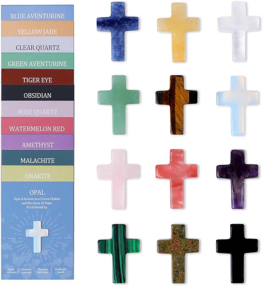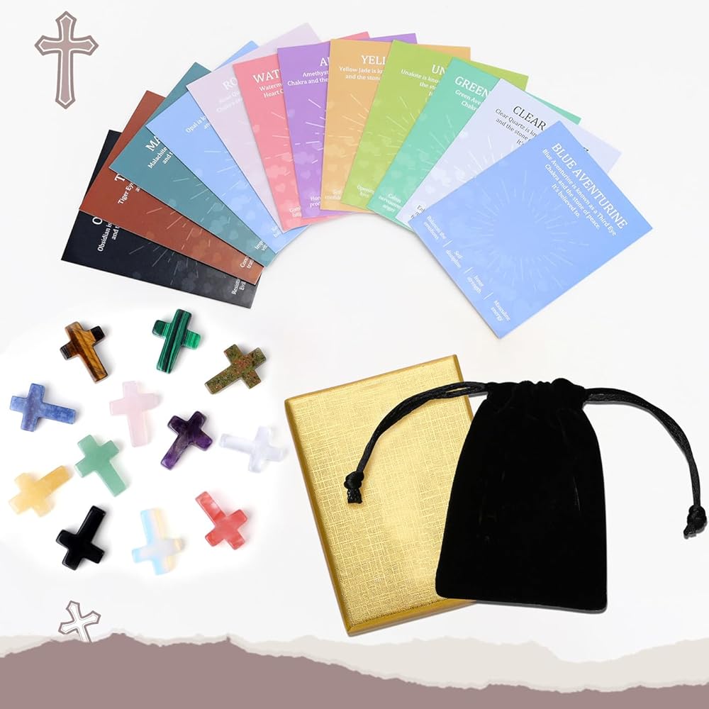 أحجار كريستال القلب: تحتوي هذه المجموعة الكريستالية على شكل قلب على 12 حجرًا، بما في ذلك الأوبال، وكريستال الكوارتز الشفاف، والأفينتورين الأخضر، والأفينتورين الأزرق، والملكيت، والسج، وكريستال الكوارتز الوردي، والأحمر البطيخي، والجمشت، والتوباز، وعين النمر الأصفر، والأوناكيت. بالإضافة إلى 12 بطاقة تعريفية و25 غراء نانو. يمكنك لصق كل بلورة على البطاقة المقابلة وإعطائها لزملائك أو أصدقائك كهدية تبادل