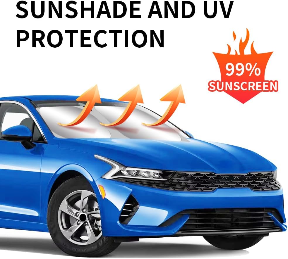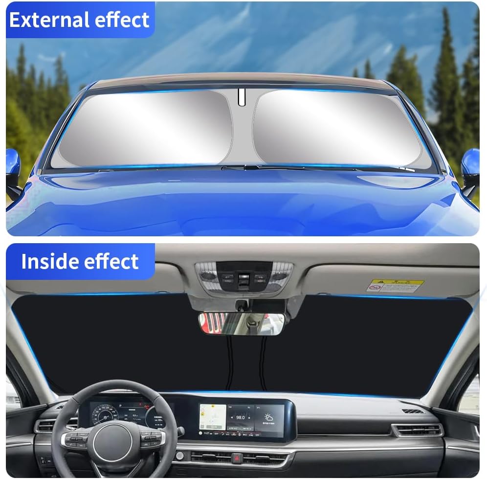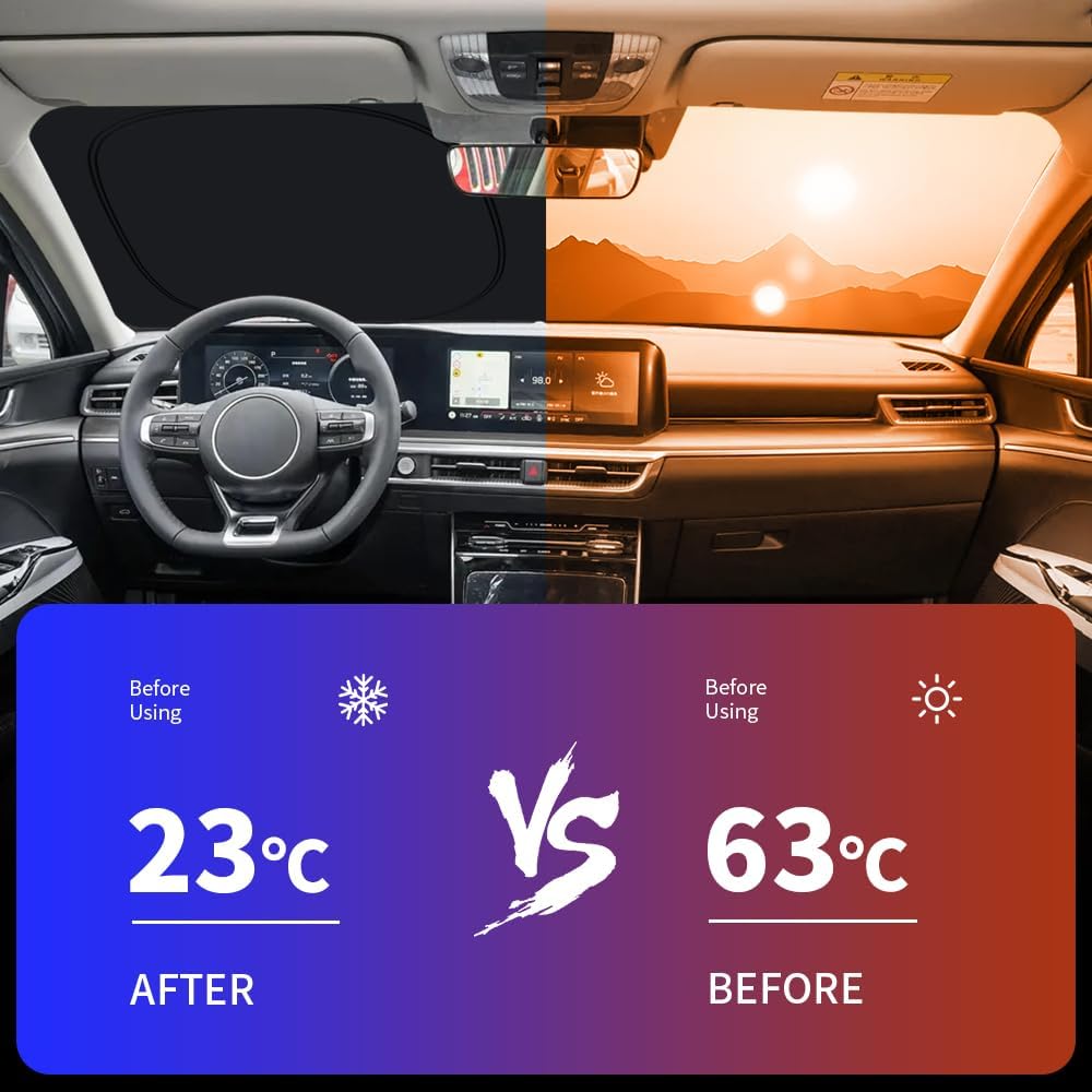 ✅[حماية السيارة وحماية الخصوصية] سواء في الصيف أو الشتاء، يمكنها حجب الشمس خارج الزجاج الأمامي، وتمنع بشكل فعال حروق الشمس على لوحة الأدوات، وتأخير شيخوخة تشقق التحكم. يمكن أن يمنع الغرباء من النظر داخل السيارة، مما يمنحك مساحة سيارة أكثر خصوصية ودون إزعاج.