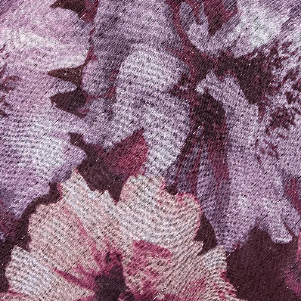 Airy Delight: This Midi printed lurex chiffon dress offers a soft, lightweight, and non-stretchy feel for optimal comfort. Complete with a charming crystal-beaded pin on the shoulder.