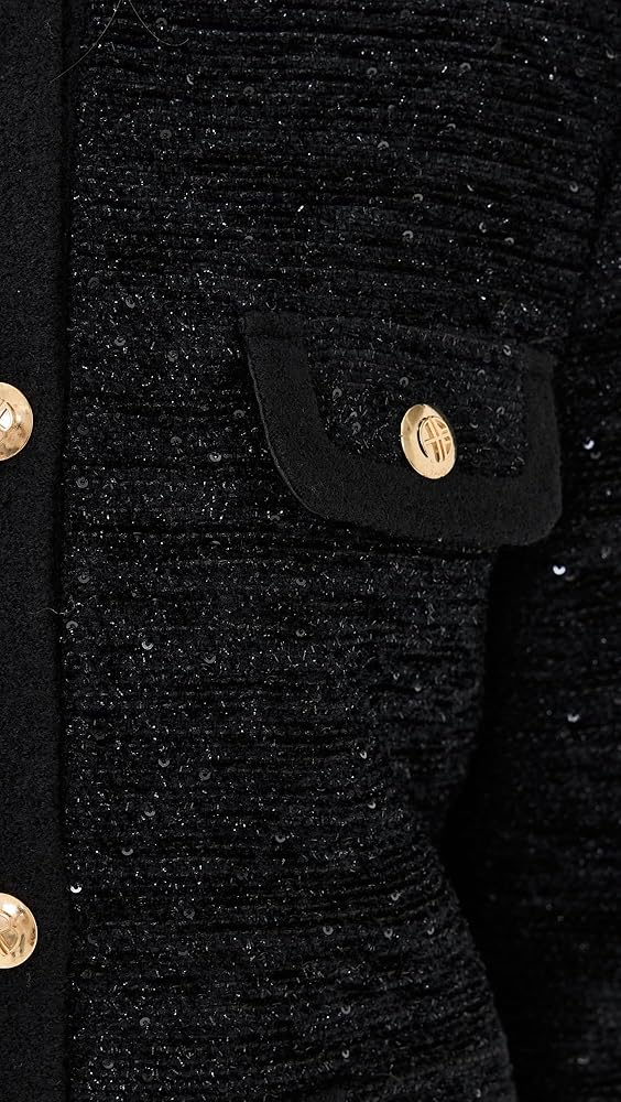 • أزرار الشعار ذهبية اللون، وزخارف من الترتر وخيوط معدنية