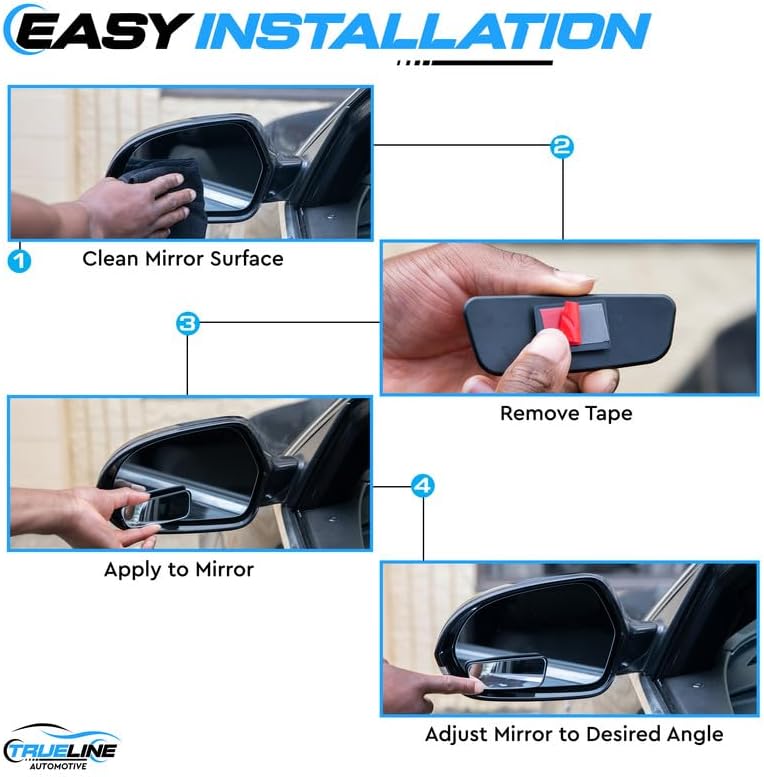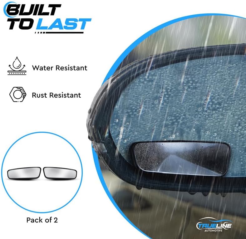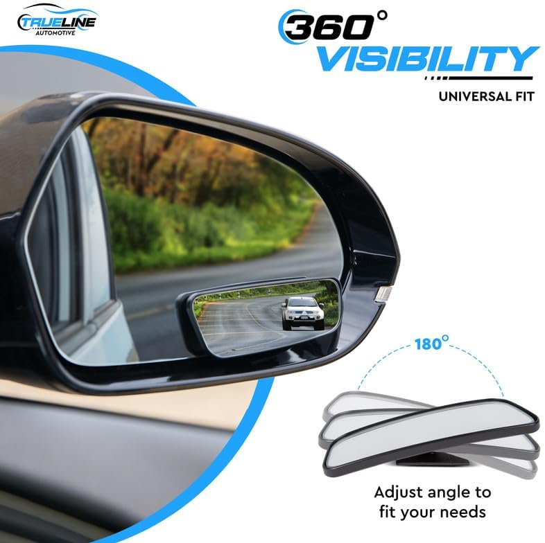 مرآة سيارة للبقع العمياء من ترو لاين أوتوموتيف - مرآة مستطيلة للبقع العمياء للسيارة مع رؤية قابلة للتعديل بزاوية 360 درجة - مرآة السيارة للنقطة العمياء، مقاس عالمي، زاوية واسعة، مرآة للنقطة العمياء للسيارة