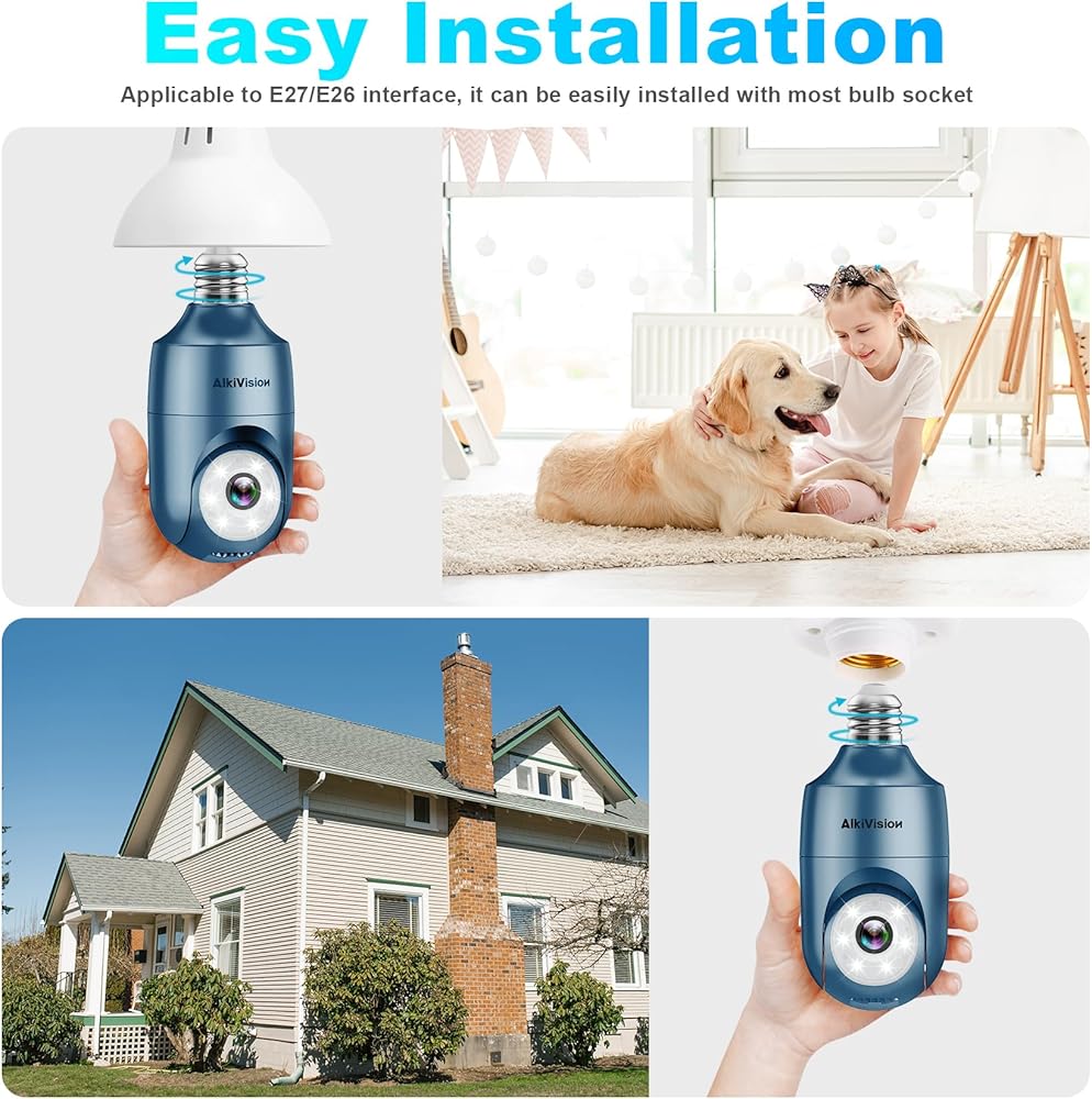 【لاسلكي وسهل التركيب للغاية】إن camaras de seguridad para casa سهلة التركيب والإعداد بشكل لا يصدق. ما عليك سوى توصيله بمقبس إضاءة E27 القياسي (110 فولت ~ 240 فولت) مثل تثبيت لمبة إضاءة، ثم تنزيل التطبيق "VicoHome"، واضغط على زر إعادة الضبط لتشغيله. لا حاجة لمسح الرموز ضوئيًا، ما عليك سوى الانتظار حتى يبحث المصباح الكهربائي عن اتصال Bluetooth الخاص بالهاتف تلقائيًا لتحديد شبكة wifi. (يعمل مع شبكة WiFi بتردد 2.4 جيجا هرتز فقط، ولا يتم دعم شبكة WiFi بتردد 5 جيجا هرتز).