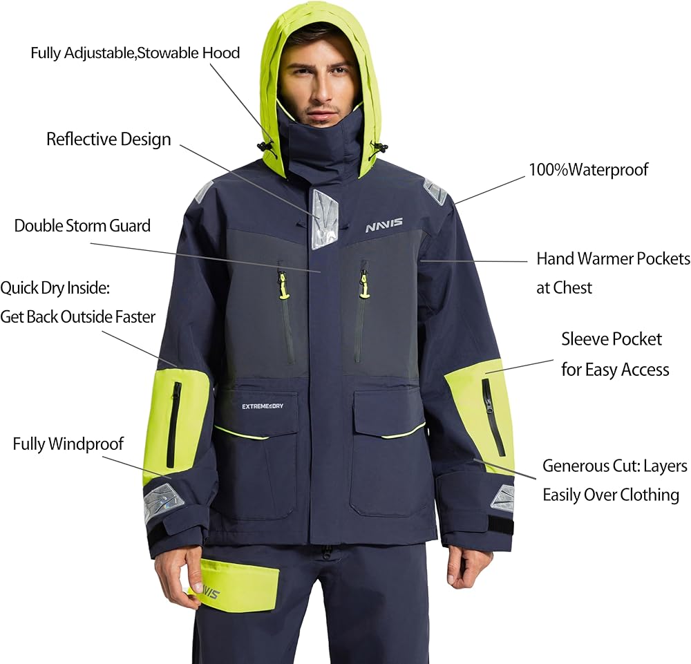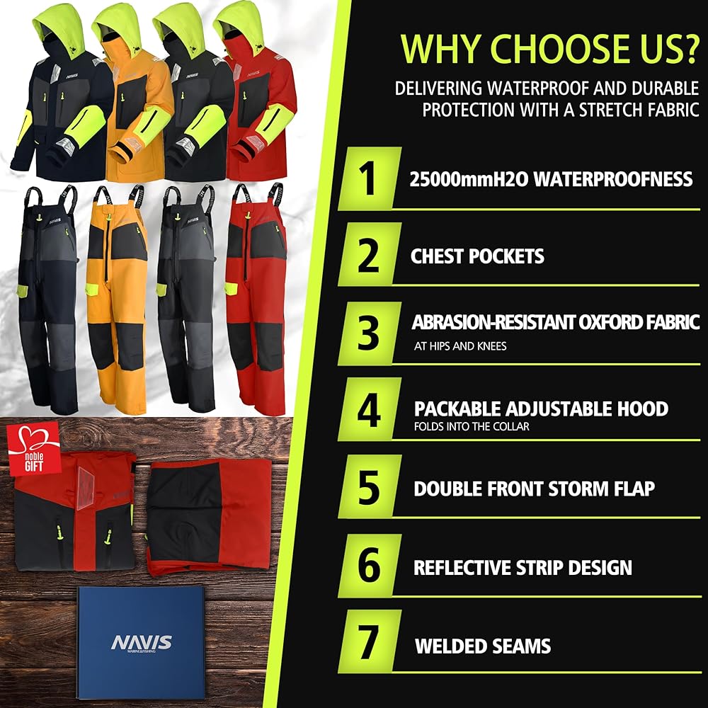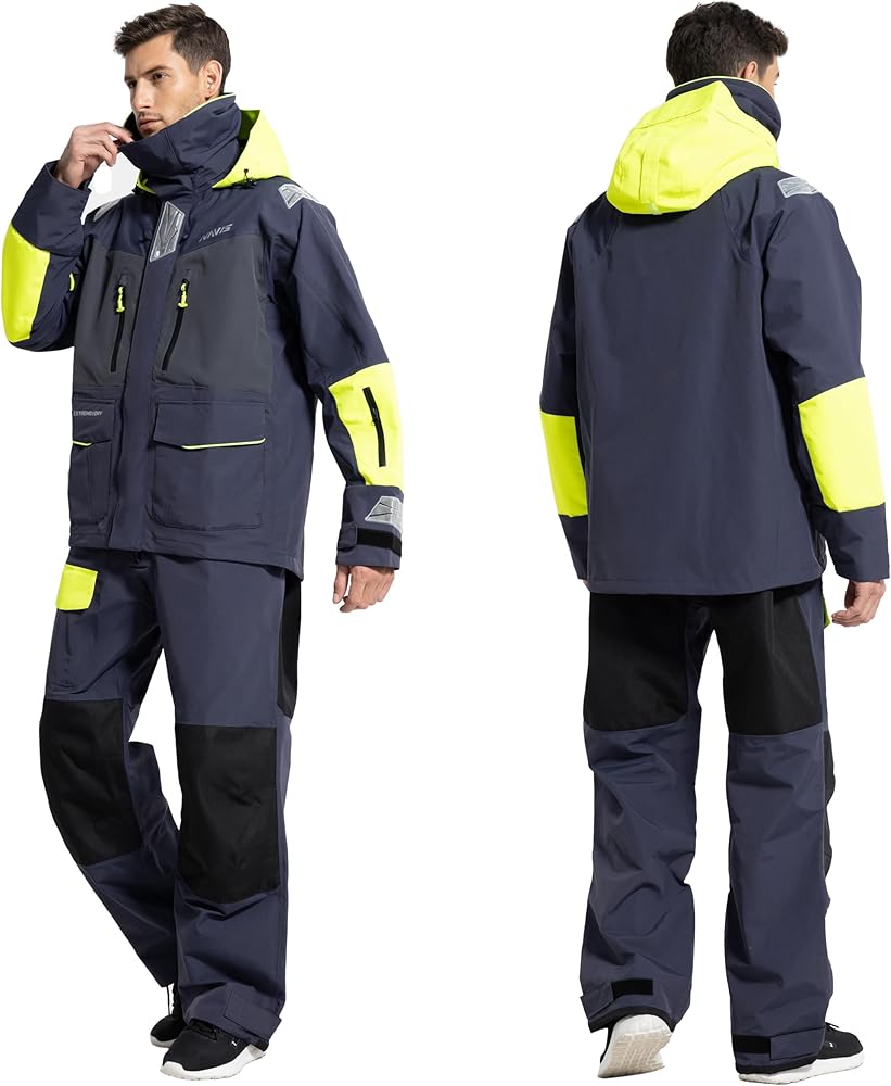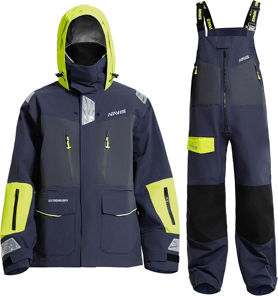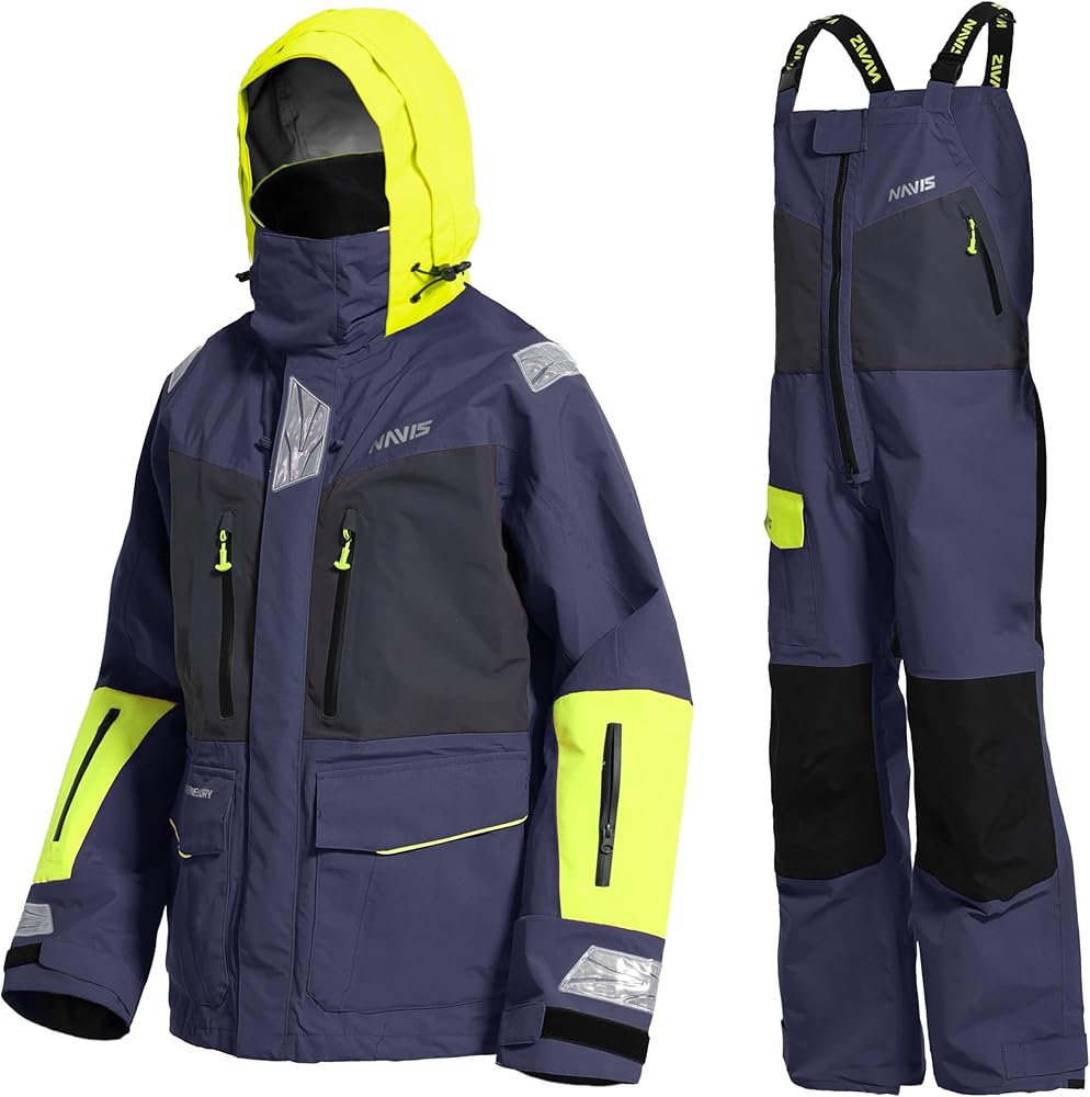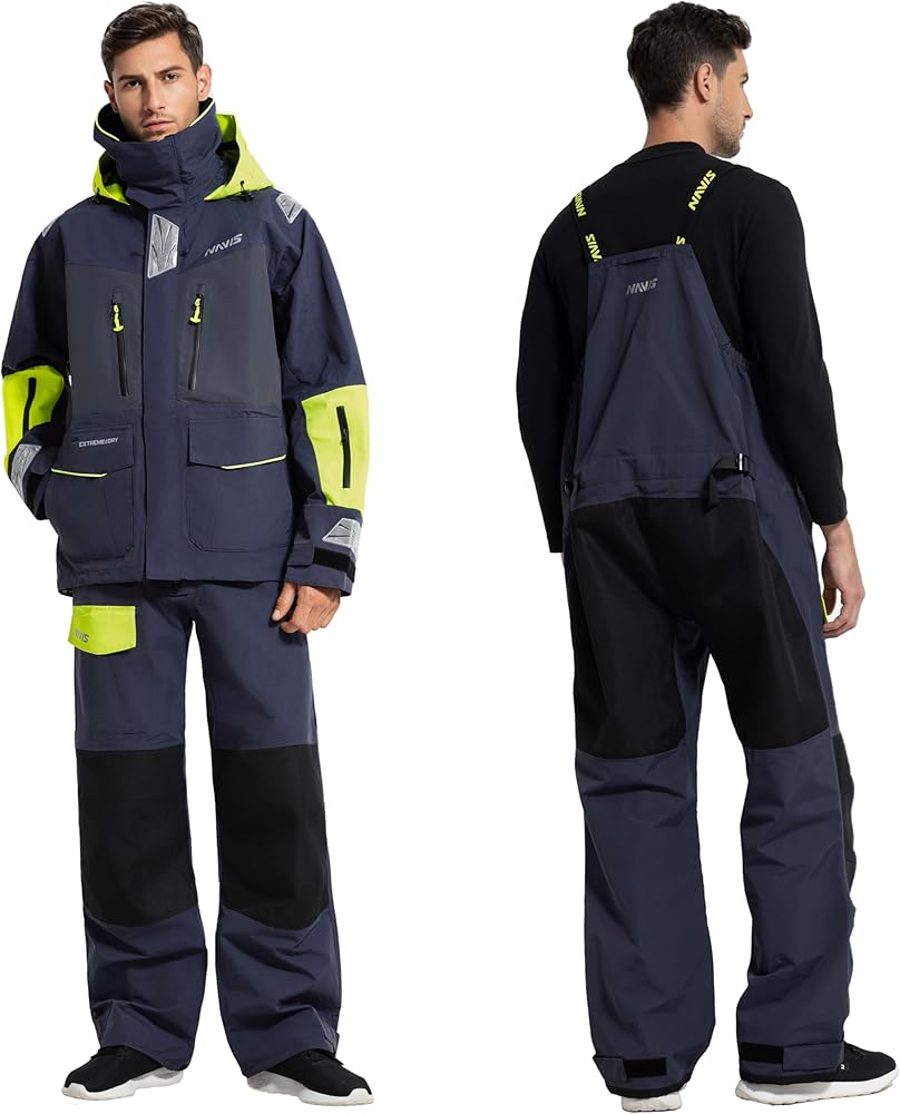 • نسيج مقاوم للماء ذو ​​3 طبقات شديد الجفاف: تم تصنيع كل من السترة والسراويل المريلة من نسيج NAVIS MARINE شديد الجفاف المكون من 3 طبقات، مما يضمن أعلى مستوى من مقاومة الماء والتهوية. تحافظ معدات الطقس السيئ هذه على راحتك وجفافك، مما يسمح للرطوبة بالهروب مع توفير حاجز موثوق ضد المطر والرياح ورذاذ المحيط.