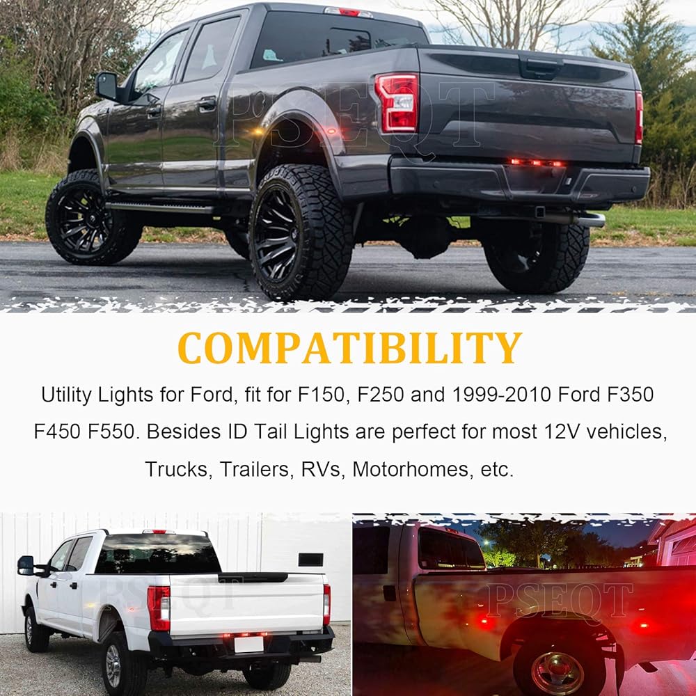 PSEQT 9 LED Identification ID Tail Lights & 3 LED Side Marker Light Kits Waterproof for 1999-2010 F350 F450 F550