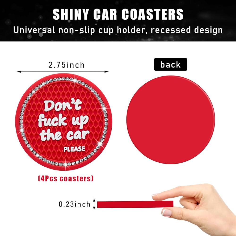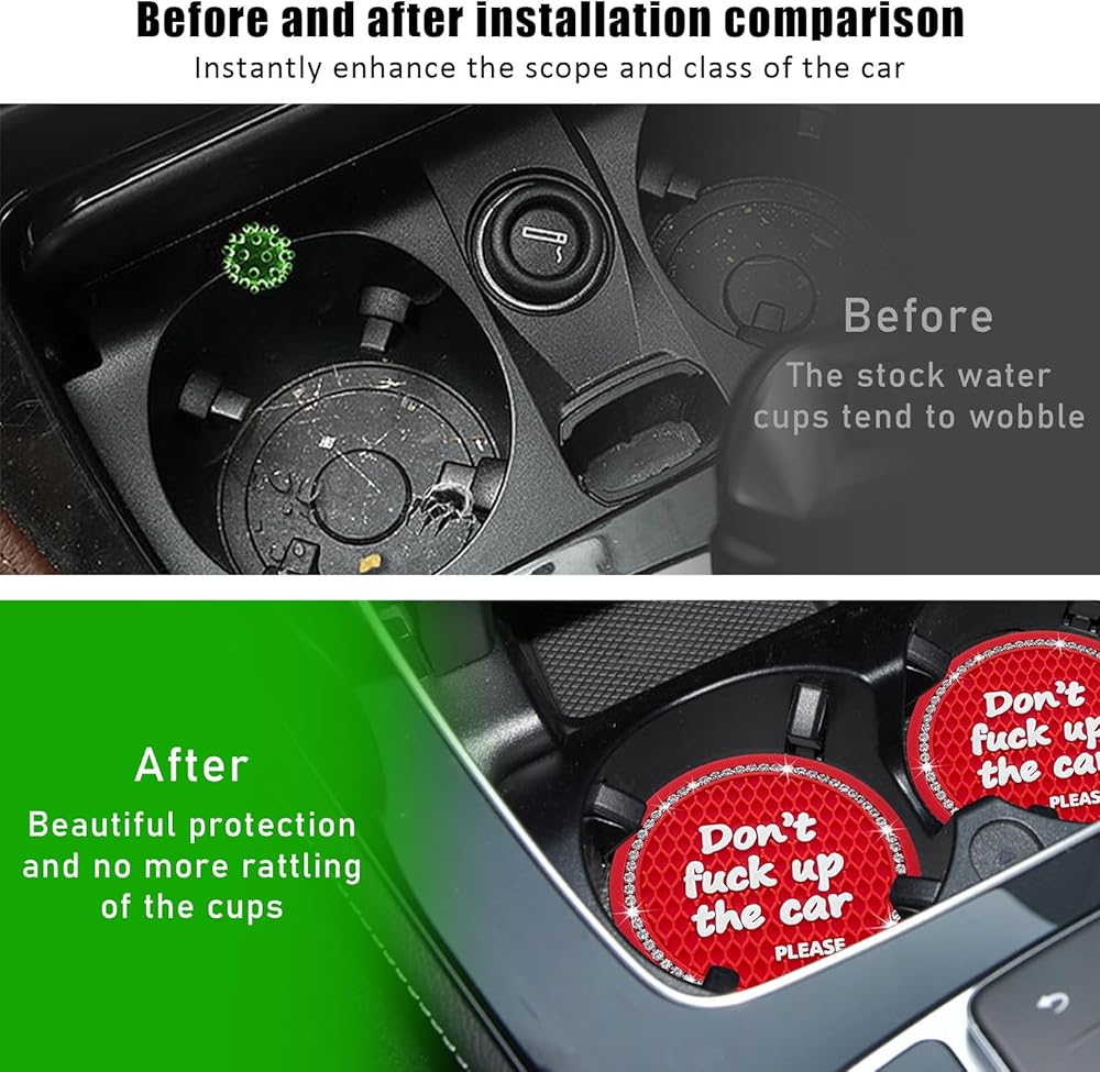 【Sparkling Rhinestone】: Car cup coaster adopts the design of a circle of rhinestone on the edge, which is specially designed for women and girls. These rhinestones are quite sparkling and beautiful, adding a sense of fashion and personality to your car interior.