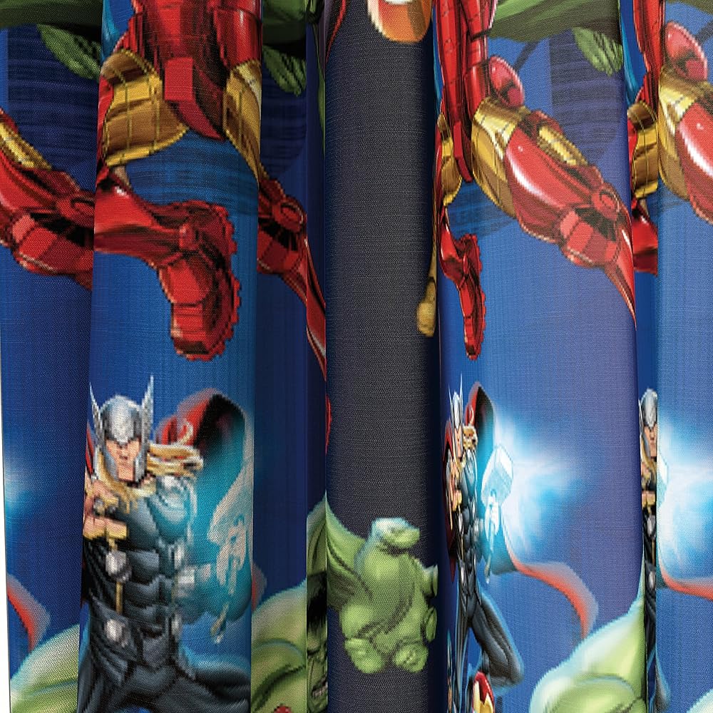 هدية رائعة - ستائر أفنجرز تبقيك خارجًا تسوق مجموعة أفنجرز - أكمل غرفة نومك بمنتجات مارفل أفنجرز الأخرى - تتوفر مفروشات وإكسسوارات متناسقة (تباع بشكل منفصل). فقط الكمية المناسبة من الضوء حتى يتمكن طفلك من النوم بسلام. يُشكل هدية رائعة لأعياد الميلاد أو العطلات أو أي مناسبة. يمكن طيها لسهولة التخزين والسفر.