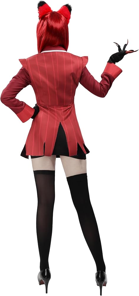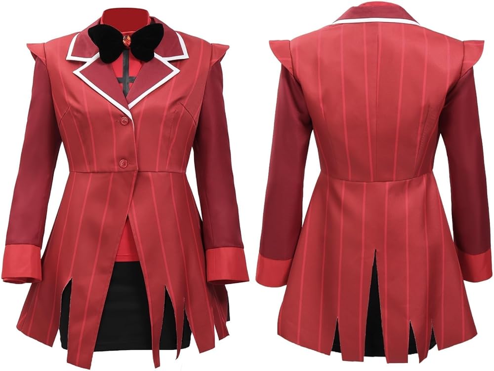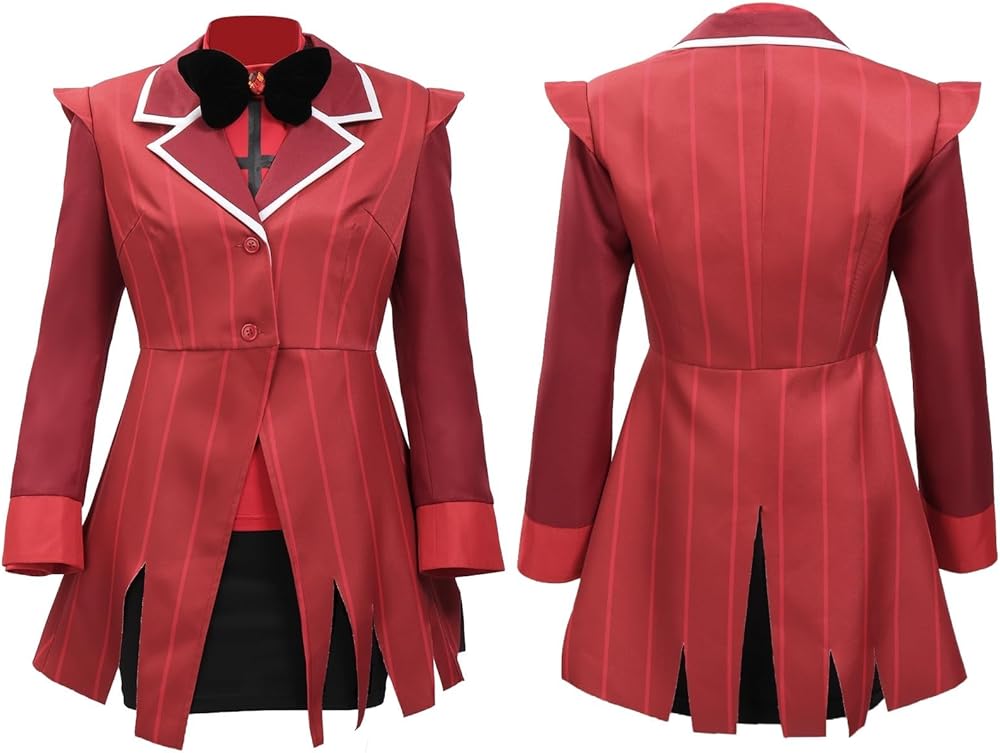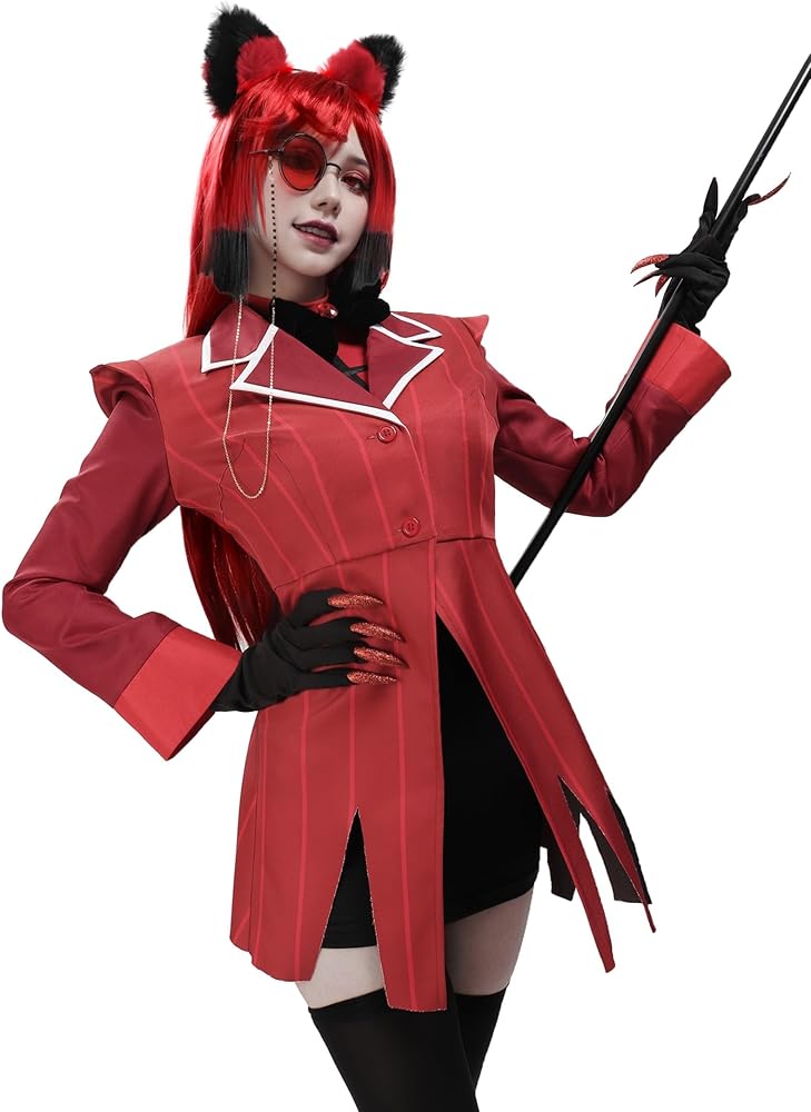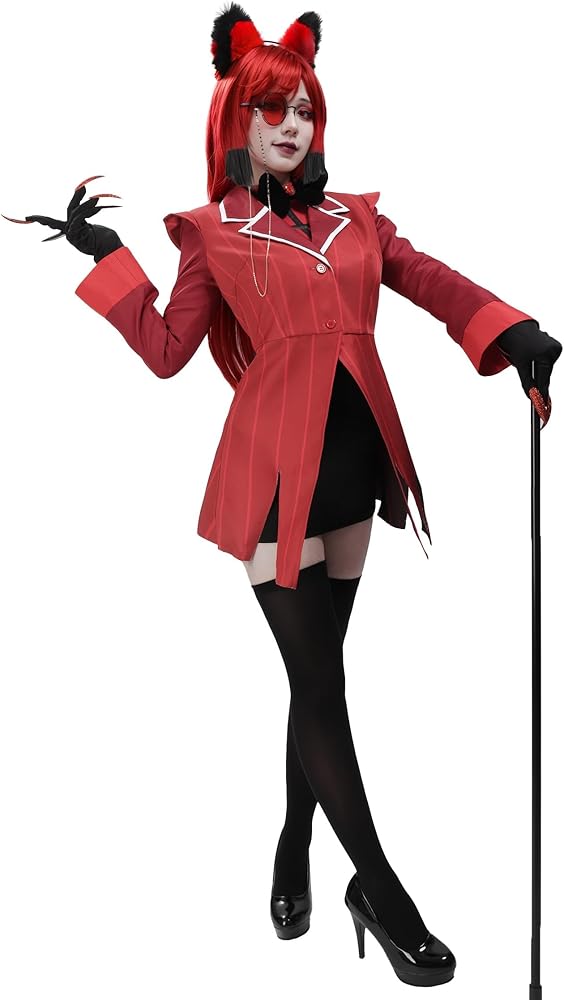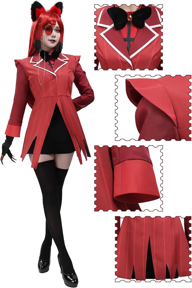 • تتضمن الحزمة: يتضمن زي Alastor سترة وملابس داخلية وتنورة وربطة عنق وقفازات وجوارب (باستثناء الشعر المستعار والنظارات). تم تصميم السترة بخصر مشدود للتأكيد على منحنياتك.