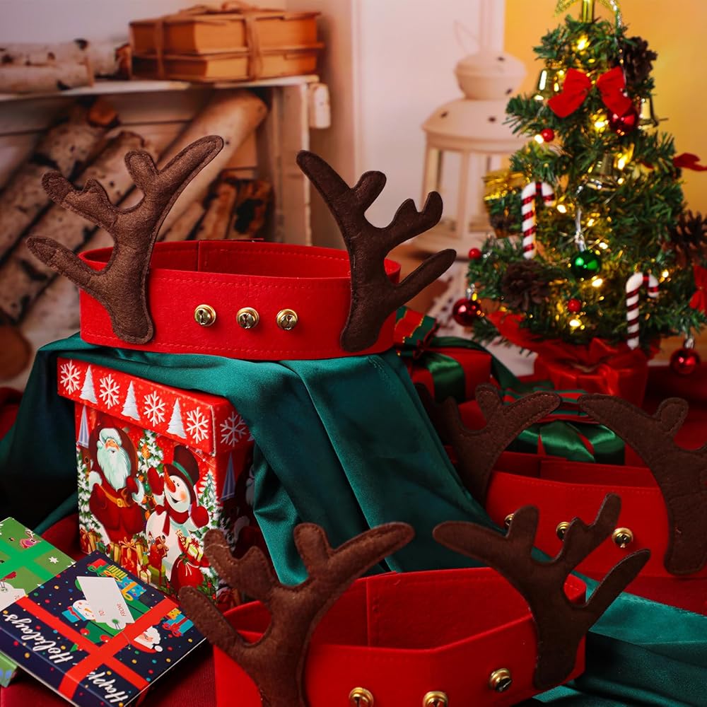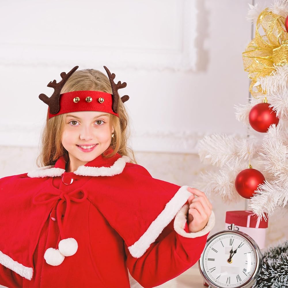 12 قطعة من عصابات رأس قرن الوعل الرنة من كارينهي للأطفال، عصابات رأس قرن الوعل من أجل الأطفال مع عصابة رأس على شكل جرس جلجل وقرون الغزلان وإكسسوارات ملابس عيد الميلاد لحفلات عيد الميلاد ومستلزمات الحفلات