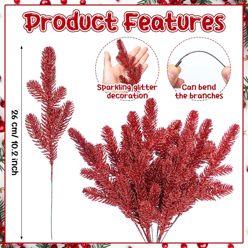 With a length of approximately 10.2 inches/ 26 cm, these glitter Christmas stems are just the ideal size to fit into your Christmas tree, wreath, garlands, or any other holiday displays. Not too long, not too small, but just right for the Christmas ambiance.