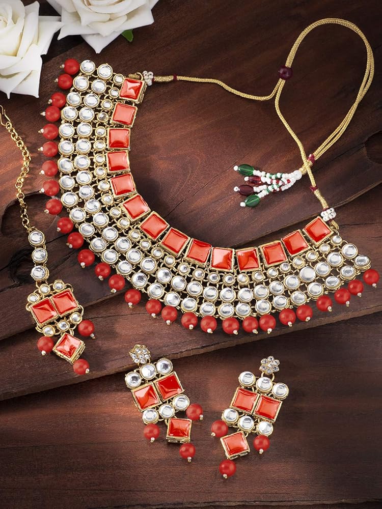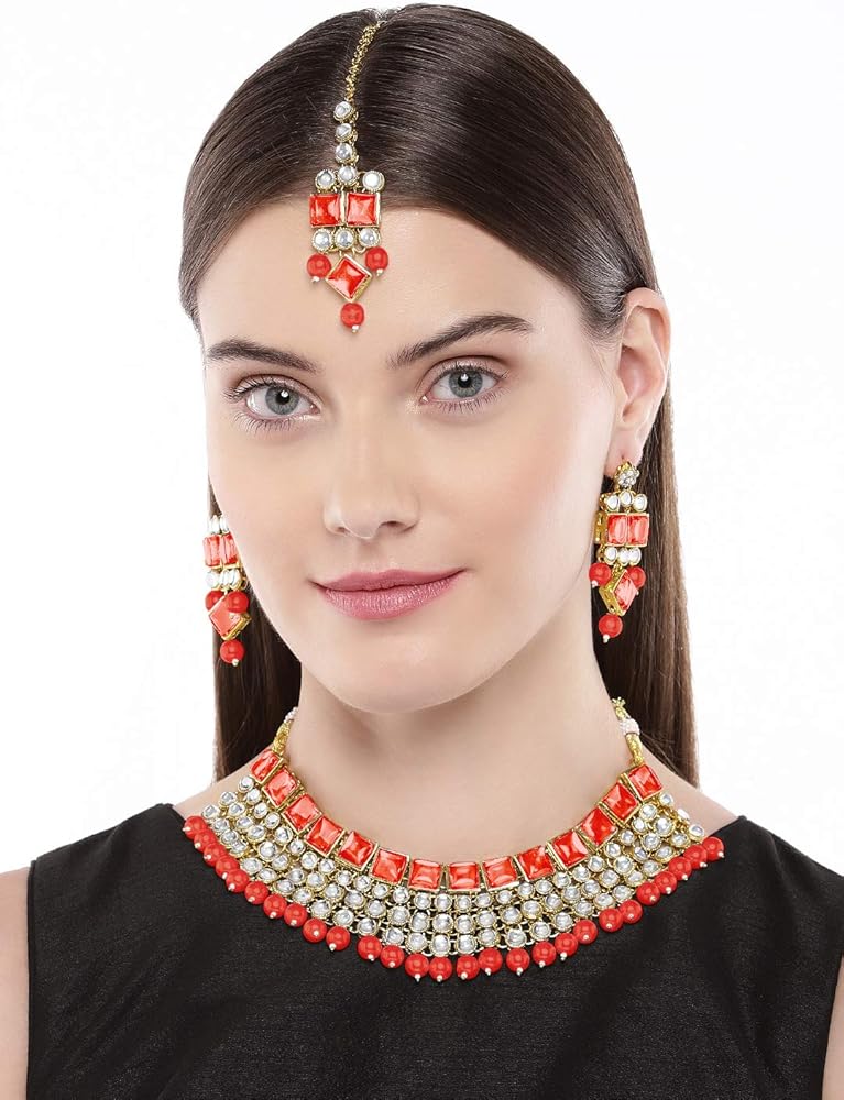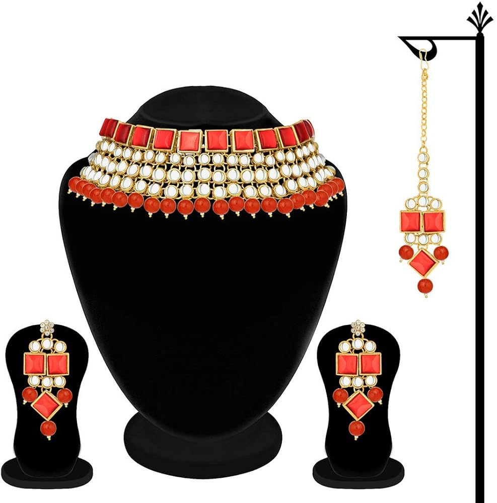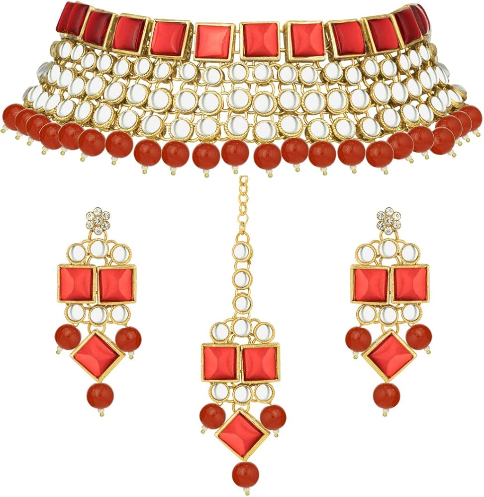 Aheli فو كوندان حجر الهندي التقليدي قلادة أقراط Maang تيكا مجموعة الزفاف موضة ملابس الحفلات مجوهرات هدية للنساء