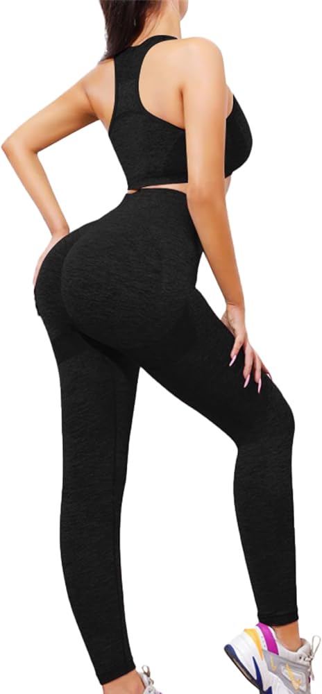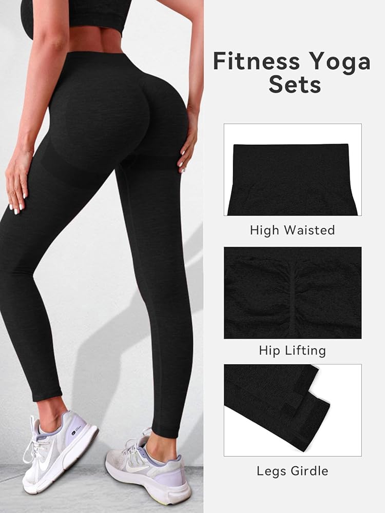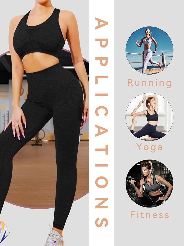 مجموعات التمارين النسائية: مجموعات تدريب ذات ألوان فريدة للنساء، تتيح لك التميز بعيون مشرقة أثناء ممارسة التمارين. حمالة صدر رياضية جديدة بدون خياطة مطابقة للسراويل الضيقة عالية الخصر، مع حزام خصر عريض مرتفع مع تحكم في البطن، تحدد منحنياتك وتبسط الشكل الطبيعي لخصرك، وتجعلك تشعر بالثقة والدعم أثناء التدريب.