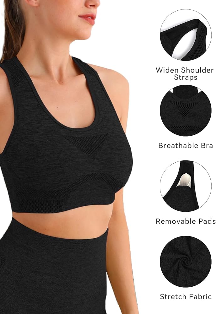 حمالة صدر رياضية مبطنة: تستخدم حمالة الصدر المبطنة أكوابًا إسفنجية خفيفة الوزن ماصة للرطوبة. حمالة صدر مطاطية بأربعة اتجاهات مع وسادات قابلة للإزالة يمكن أن تدعم أكواب مختلفة، وتظهر منحنياتك الرشيقة، وأشرطة ظهر المتسابق تجعلك أكثر راحة في الارتداء، دون الضغط على كتفيك.