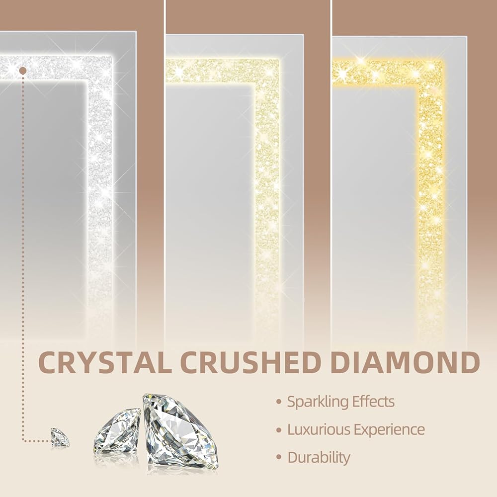 تصميم كريستال لامع متلألئ: تم تصميم مرآة الزينة المضيئة بالماس الكريستالي المطحون في شريط الضوء، ويمكن لشريط ضوء LED أن يزيد من إشراقة ديكور منزلك، ويمكن أن يكون سحق الكريستال ديكورًا منزليًا فاخرًا. إن وجود مرآة مكياج كريستالية يمكن أن يمنحك الرومانسية والمزاج الجيد